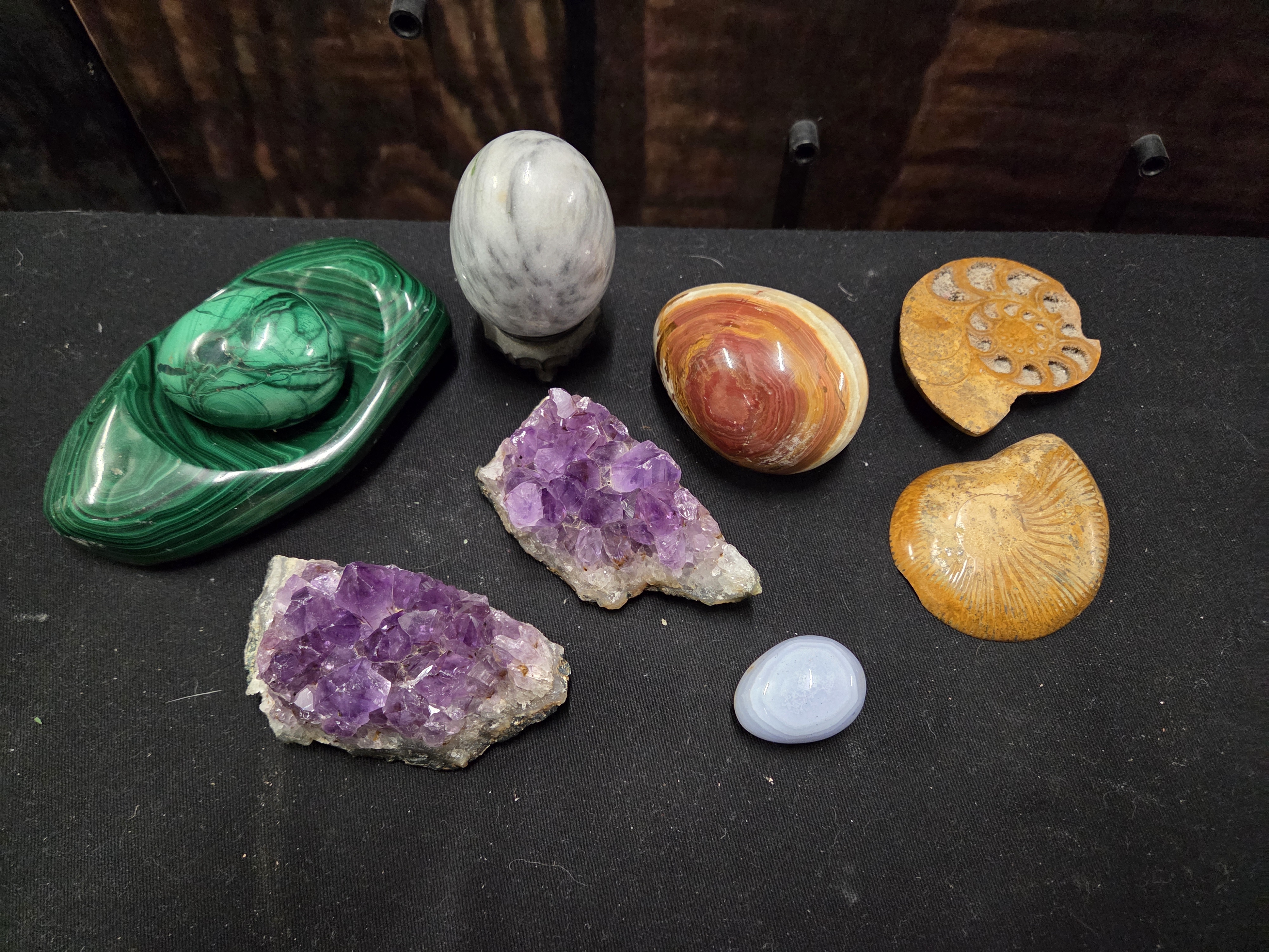 Lot 123 A Collection of Mineral Specimens, Polished Stones, and Ammonite Fossils