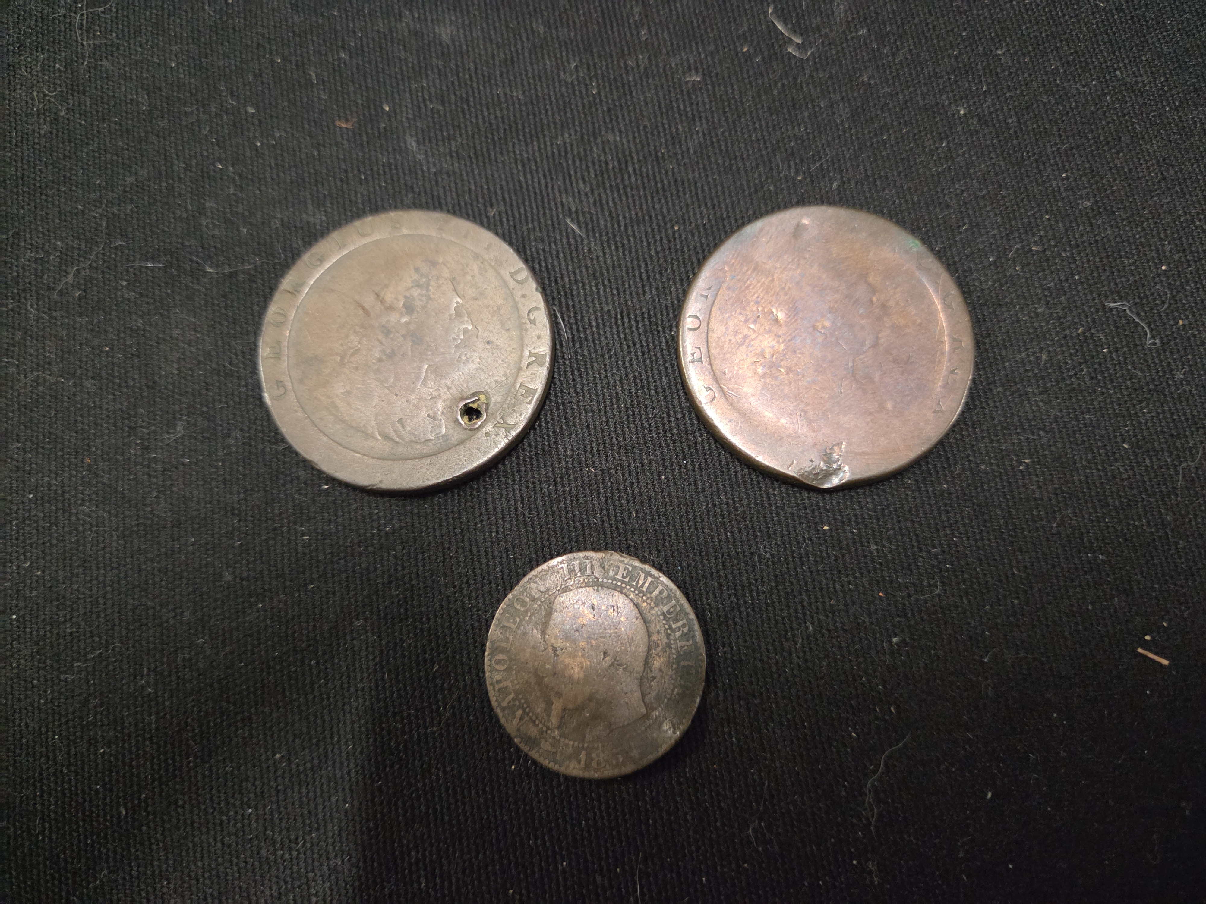 Lot 125 Three UK and FR Copper-Alloy Coins including George III Cartwheel Issues and Napoleon III Bronze