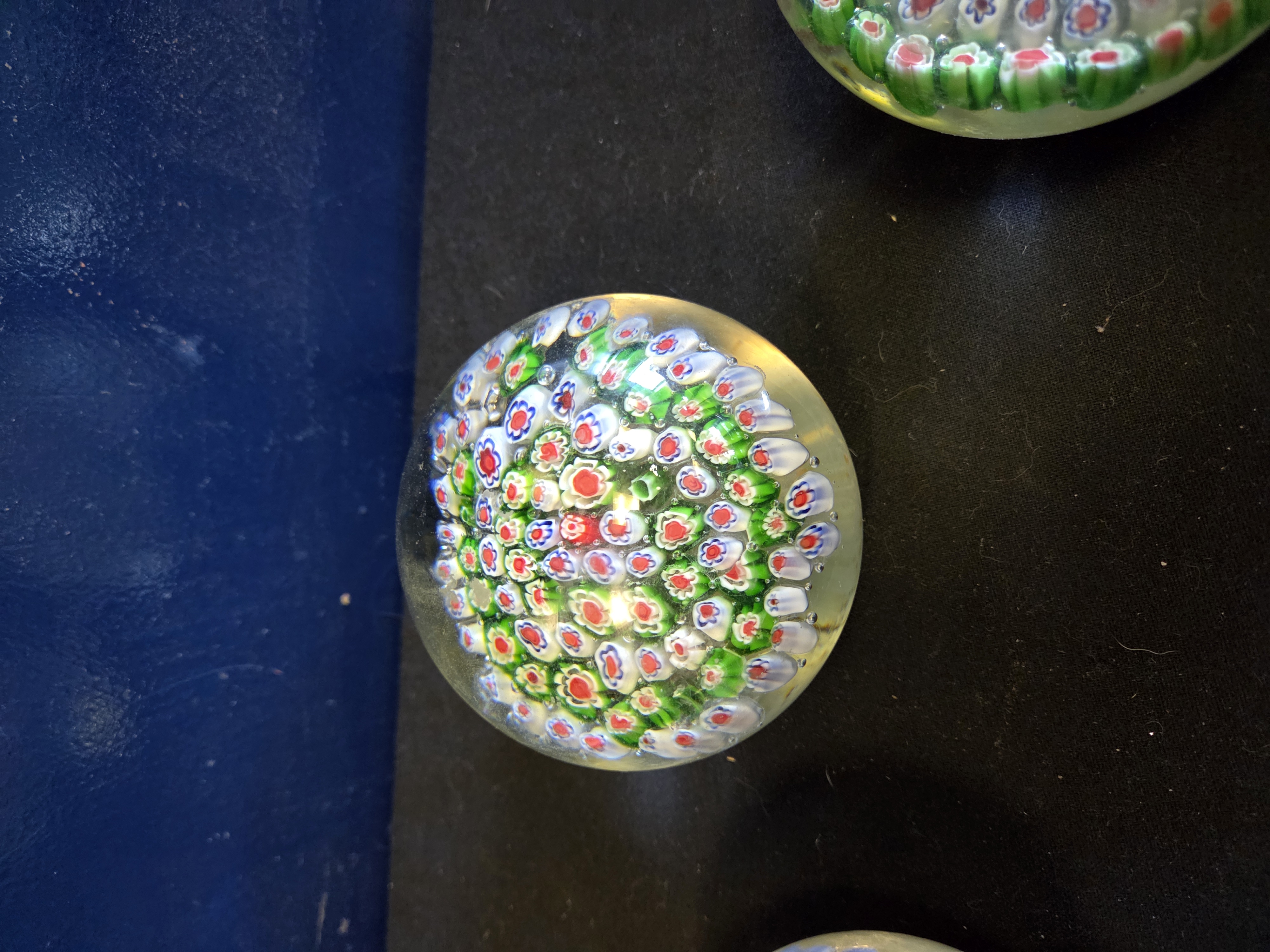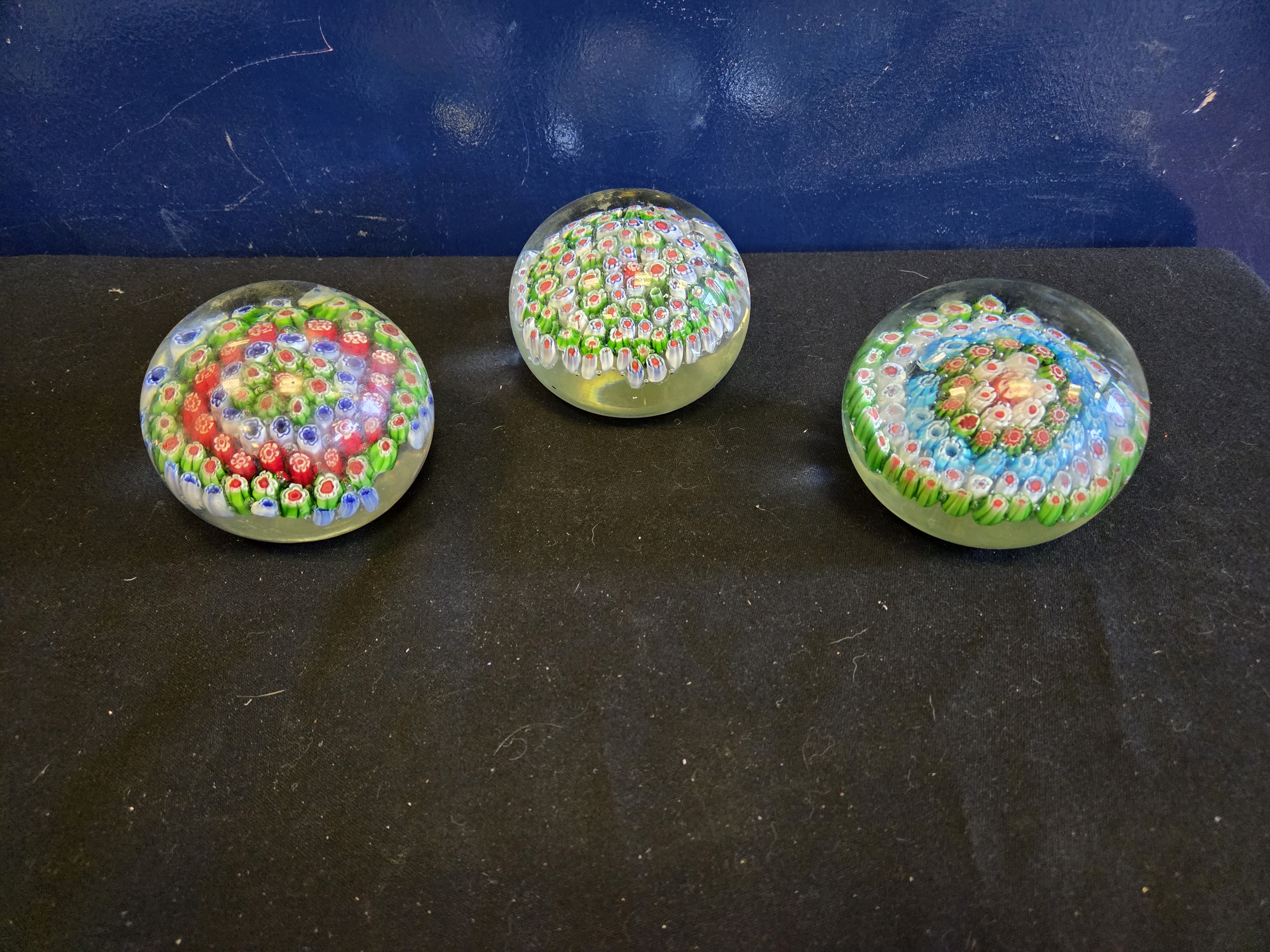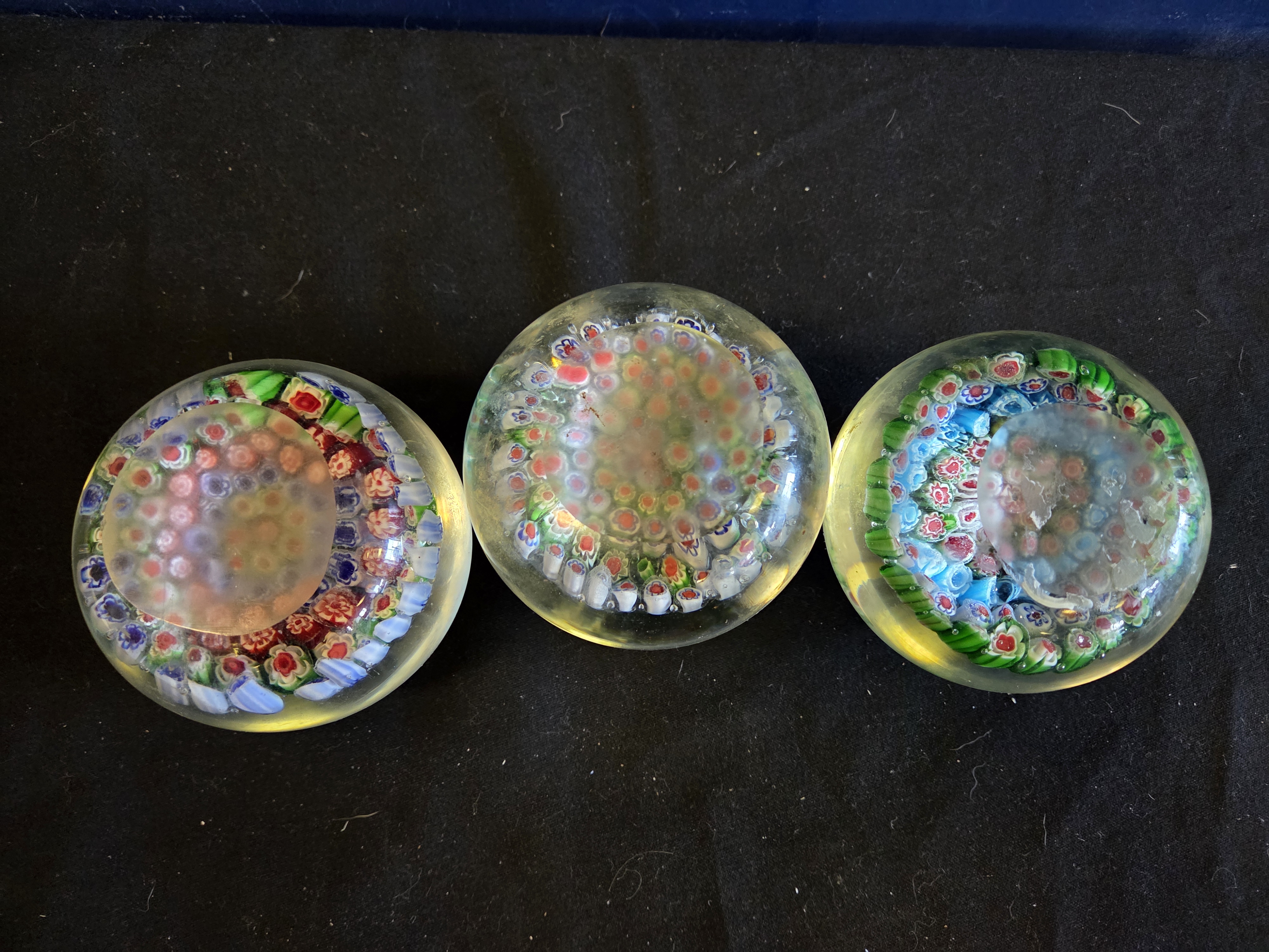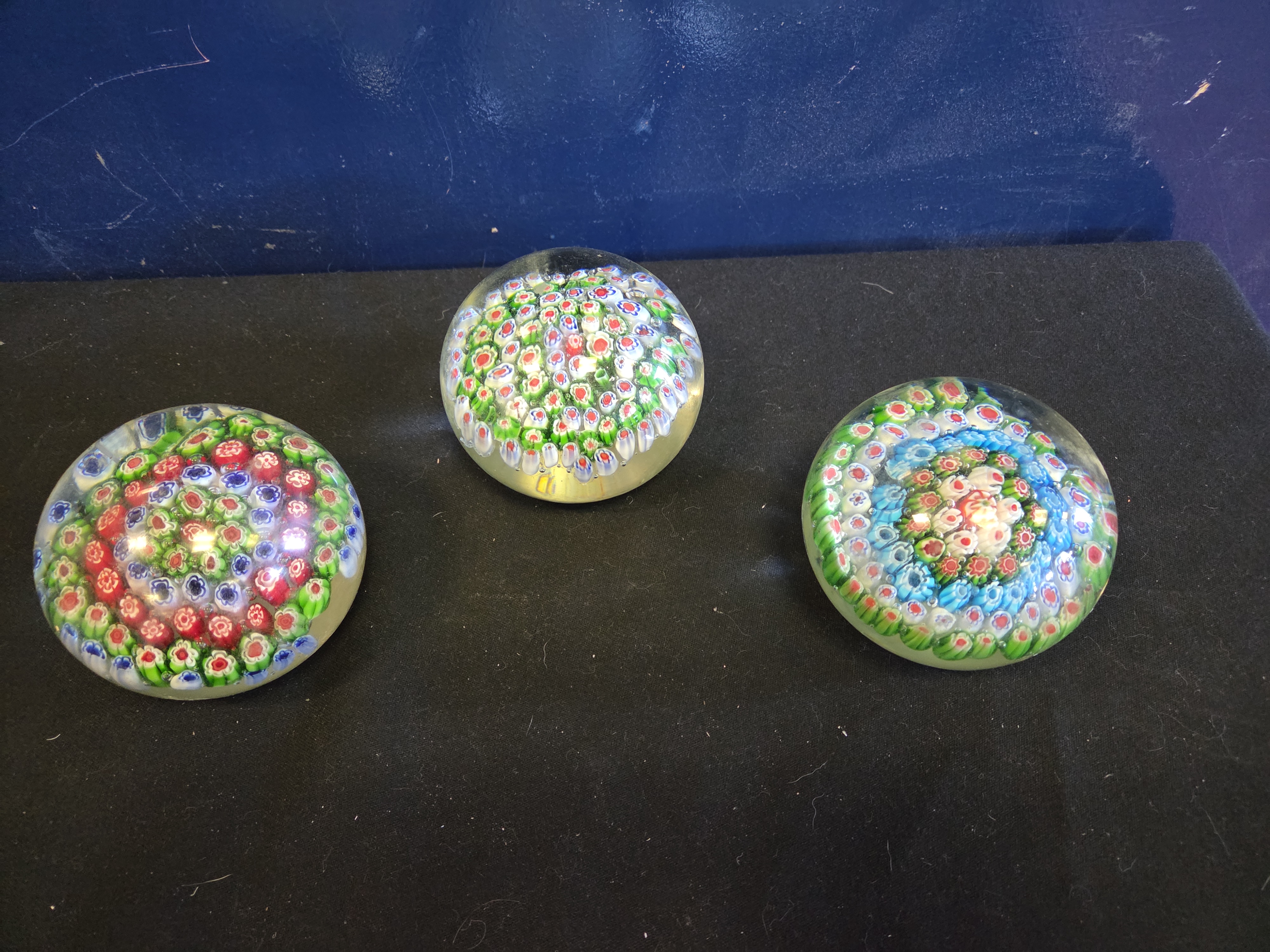 Lot 162 A Trio of Large Murano Style Millefiori Glass Paperweights