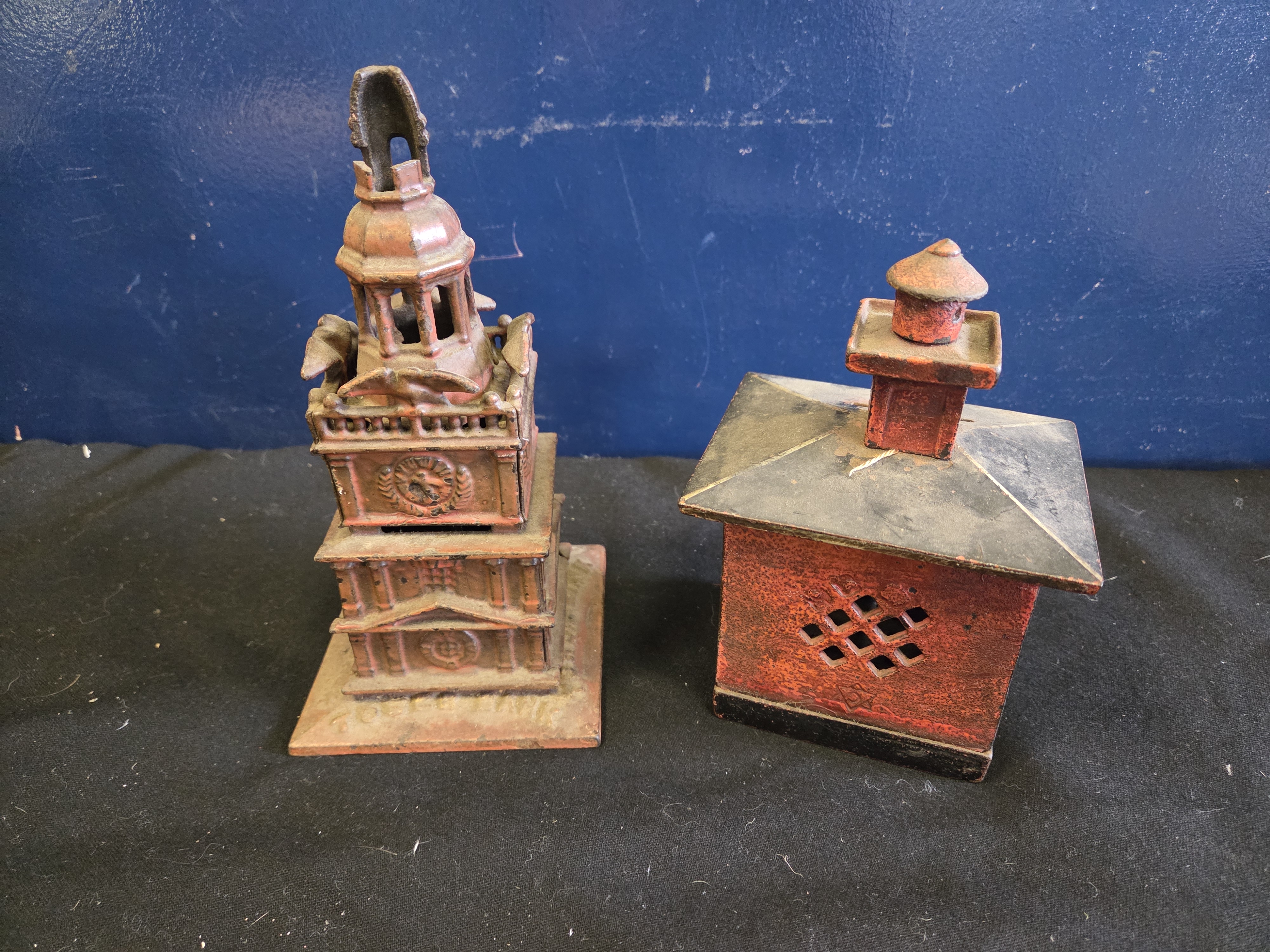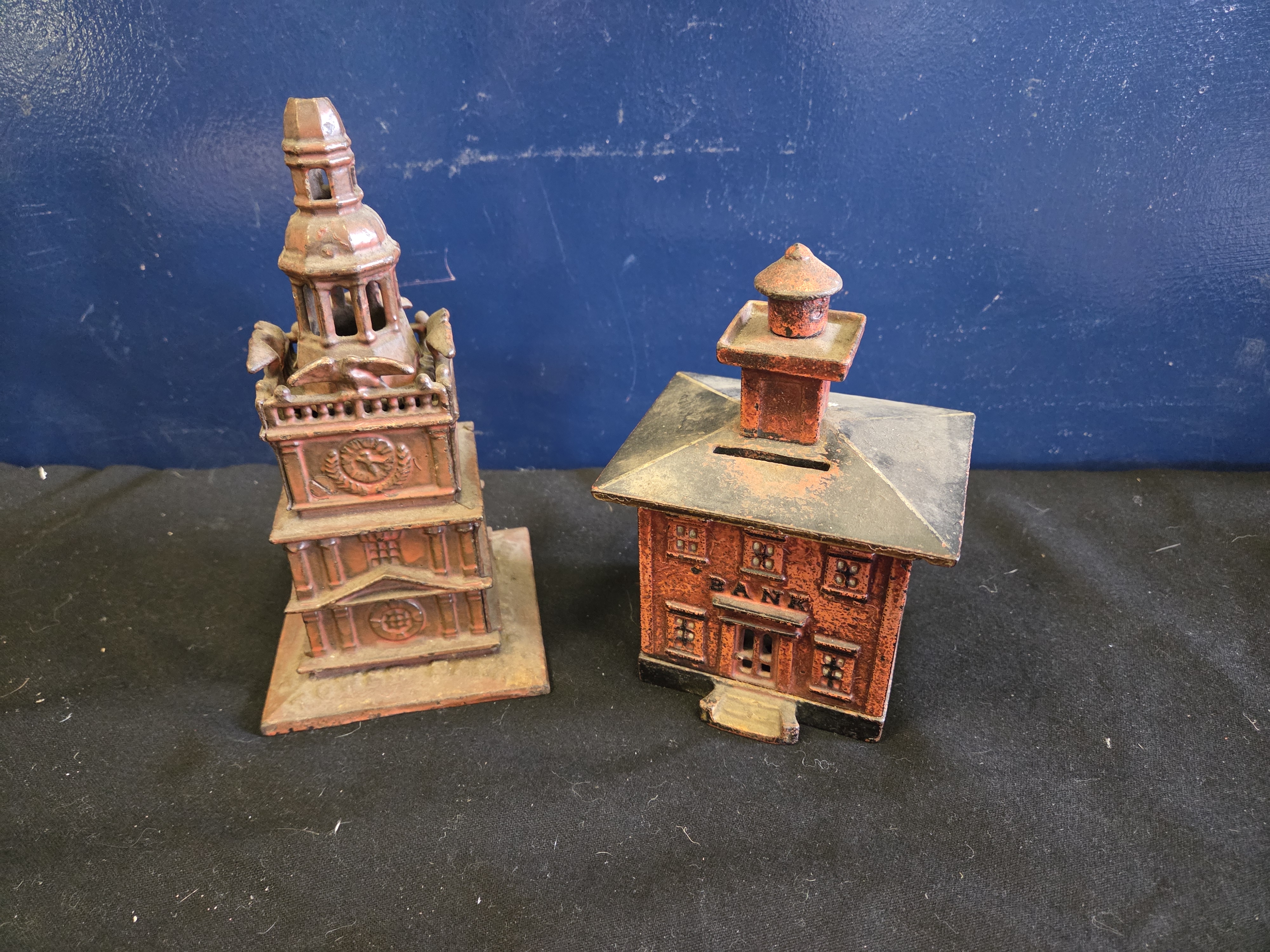 Lot 171 Two Antique Still Banks including Independence Hall and Tower Bank Models