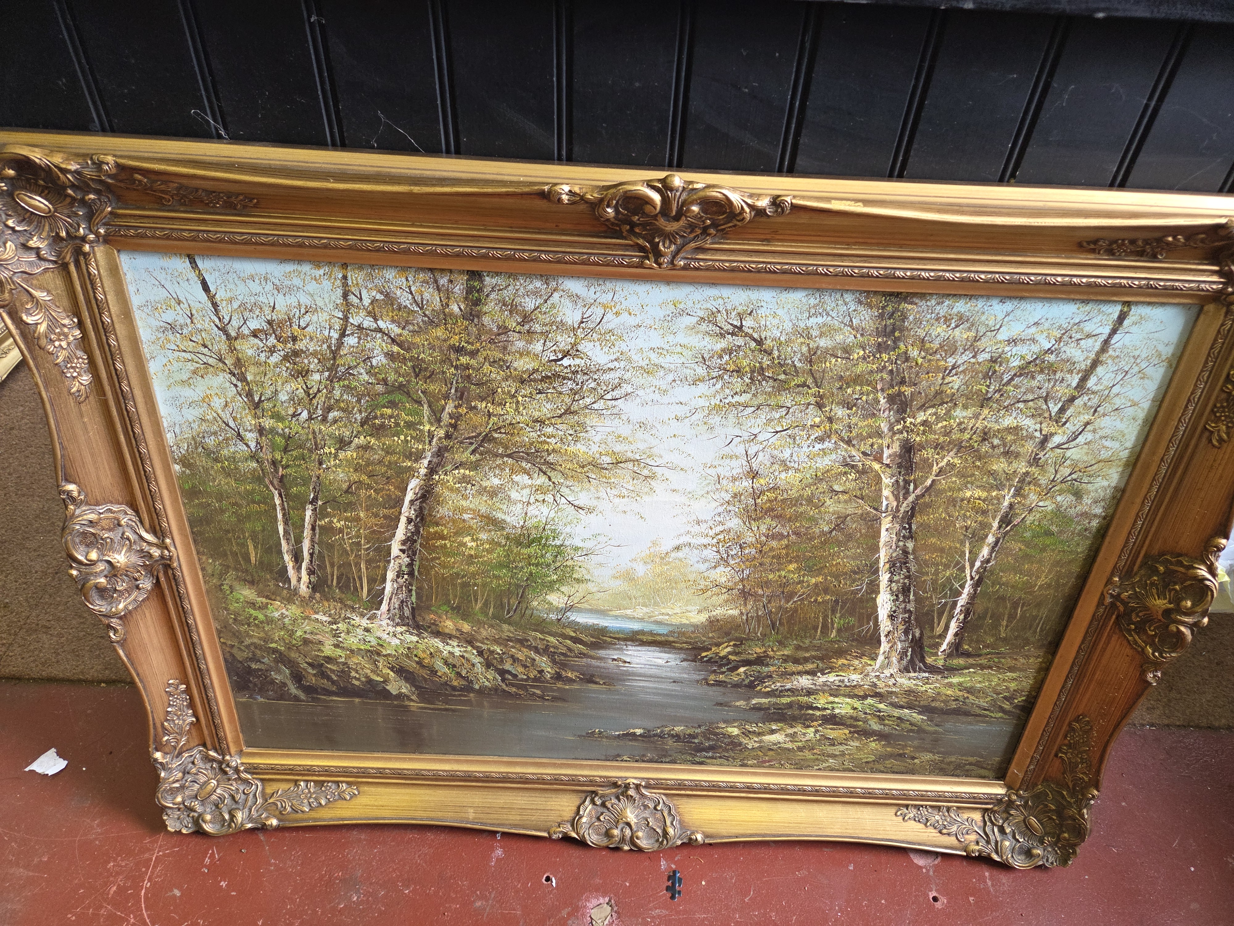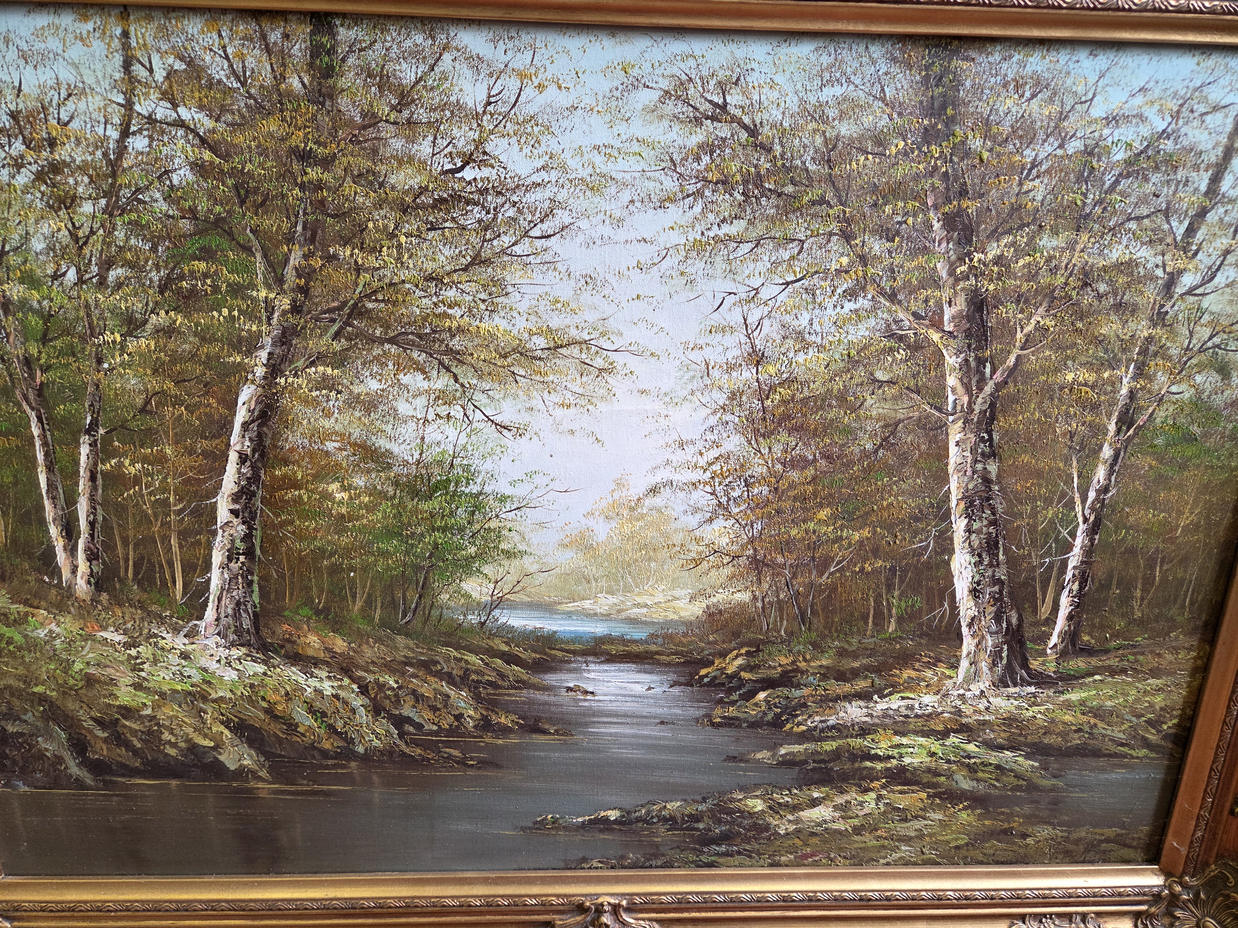Lot 173 Mid-20th Century Wooded River Landscape Oil on Canvas