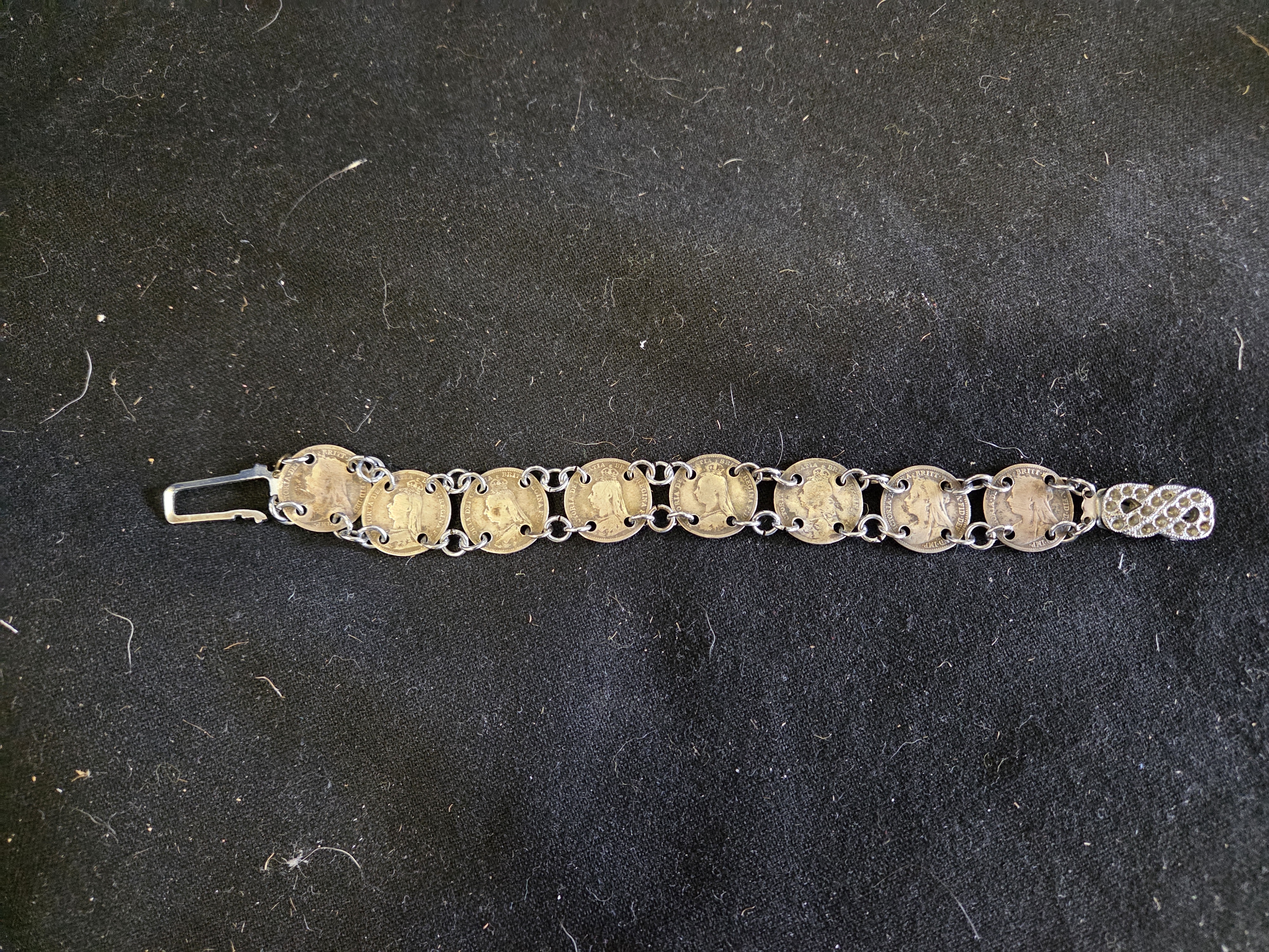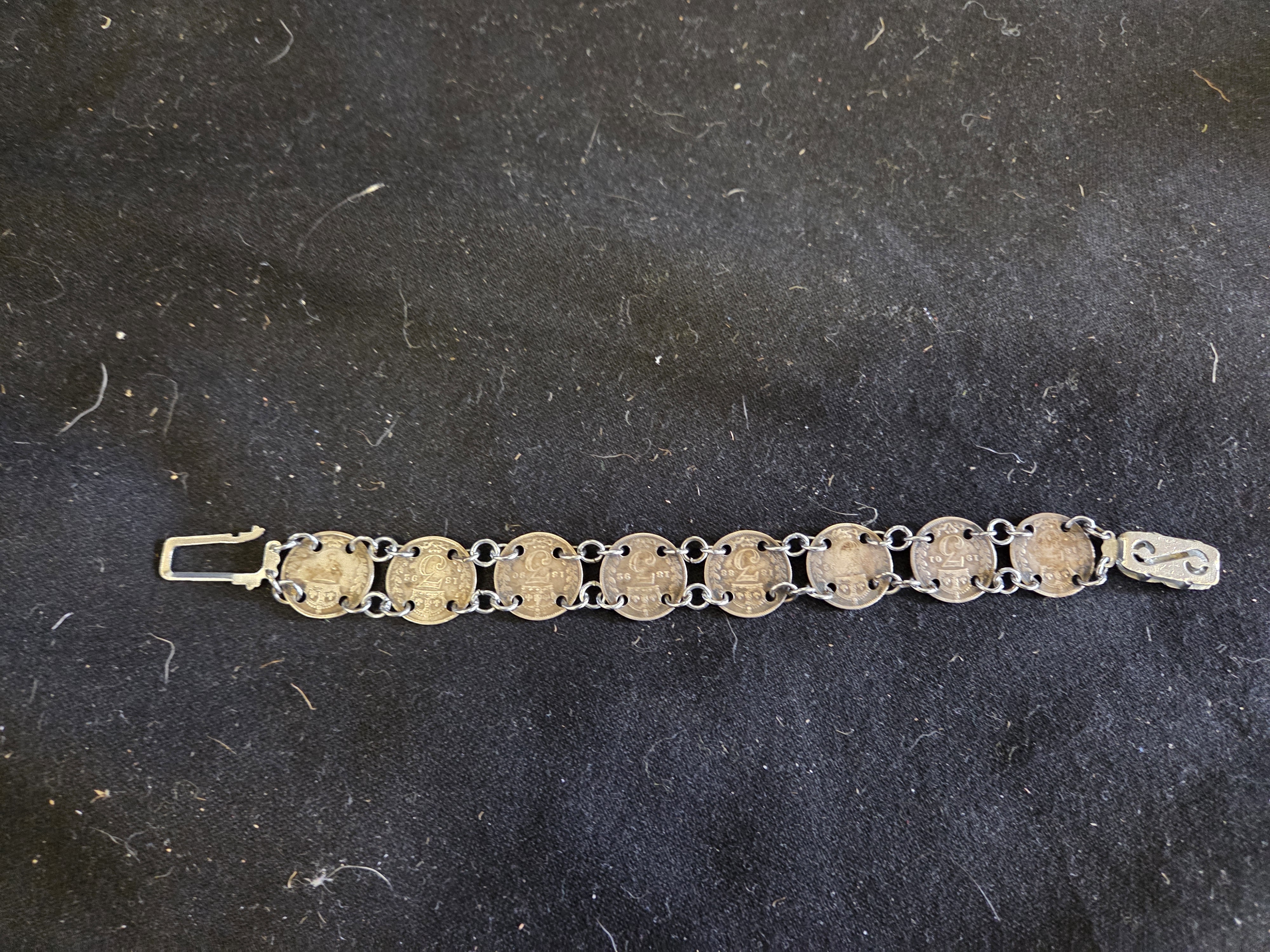 Lot 187 A Late Victorian Silver Threepence Coin Link Bracelet with Marcasite Accents