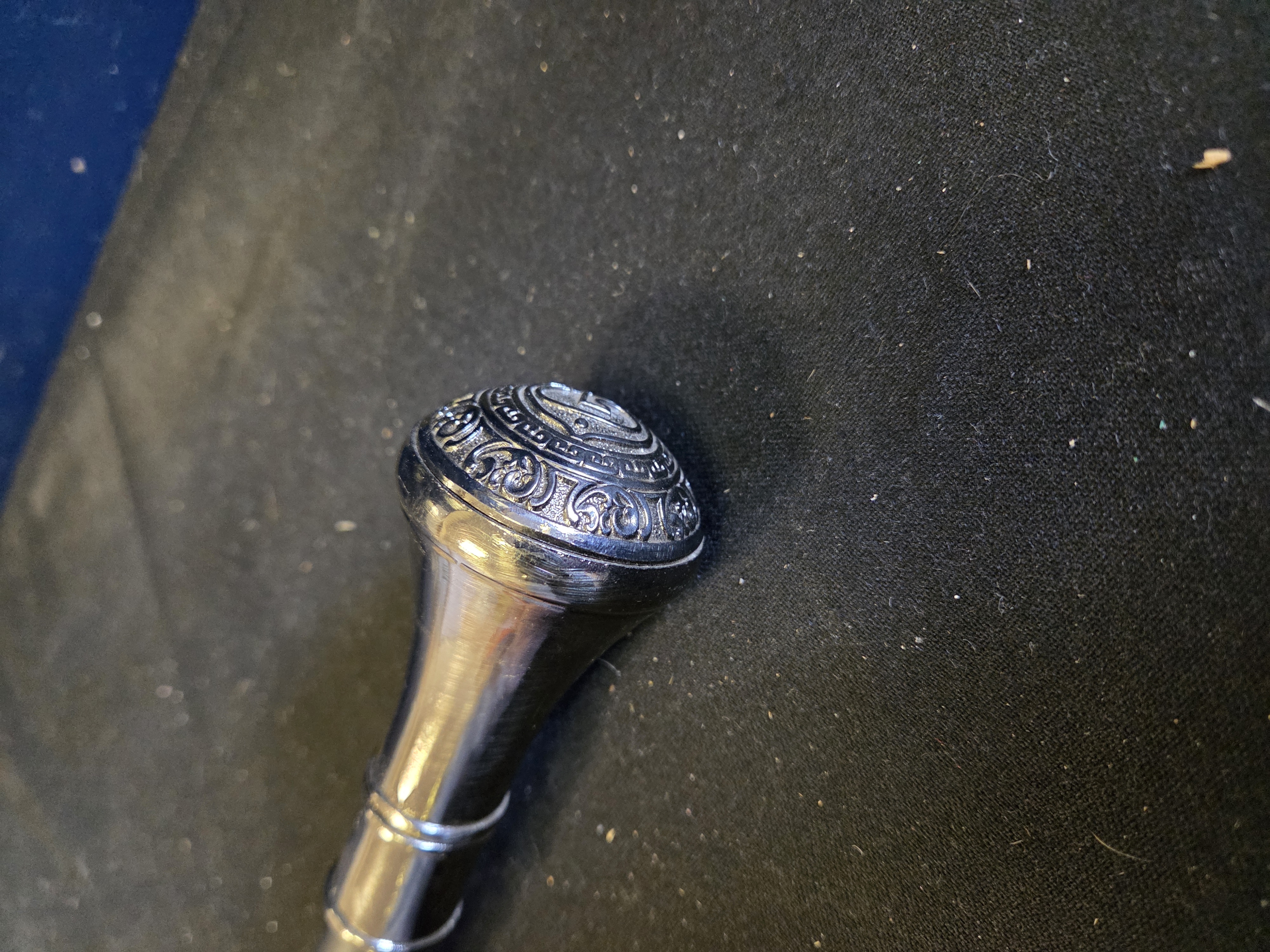 Lot 235 A contemporary walking cane with embossed silver-toned knob handle