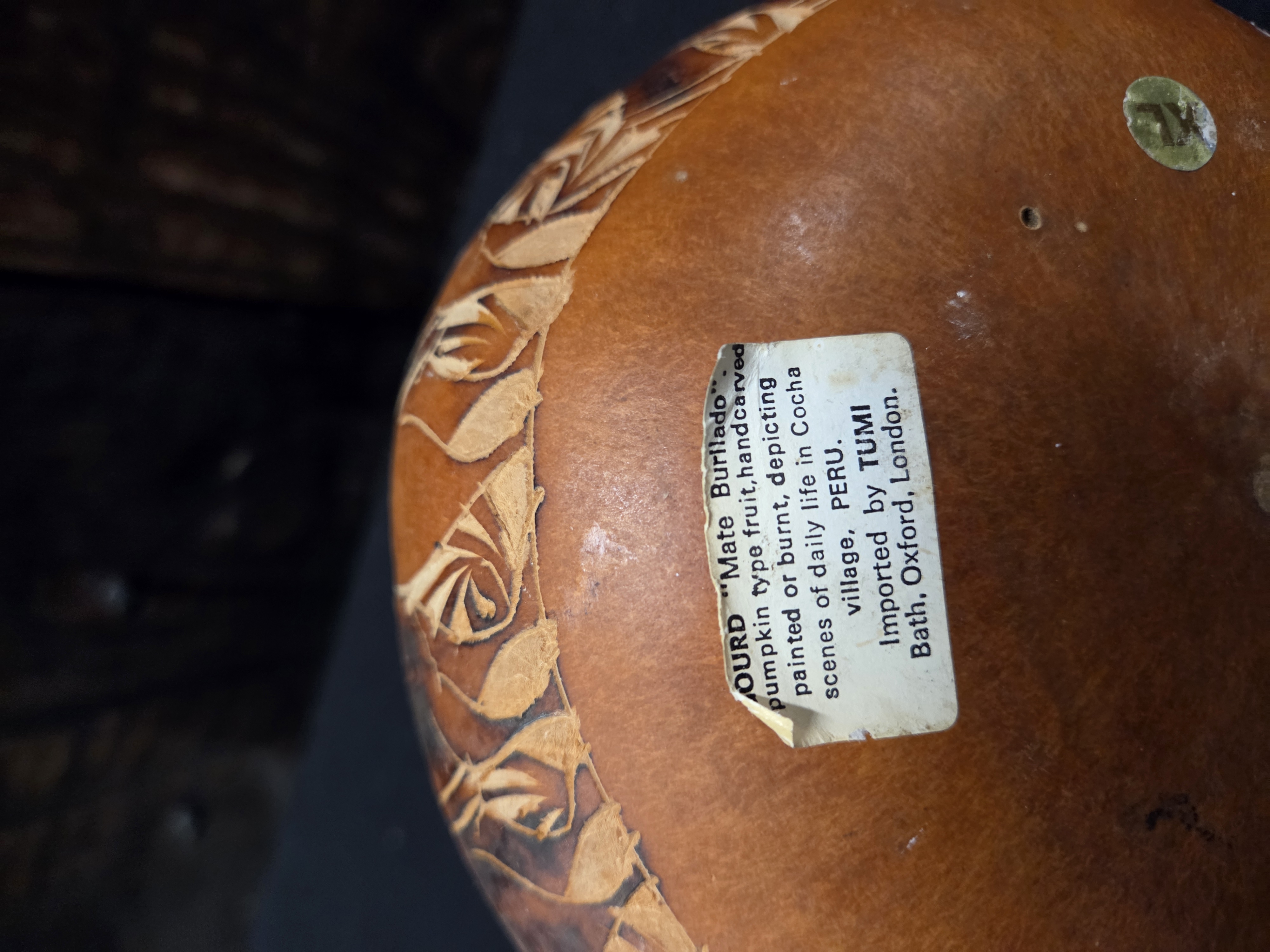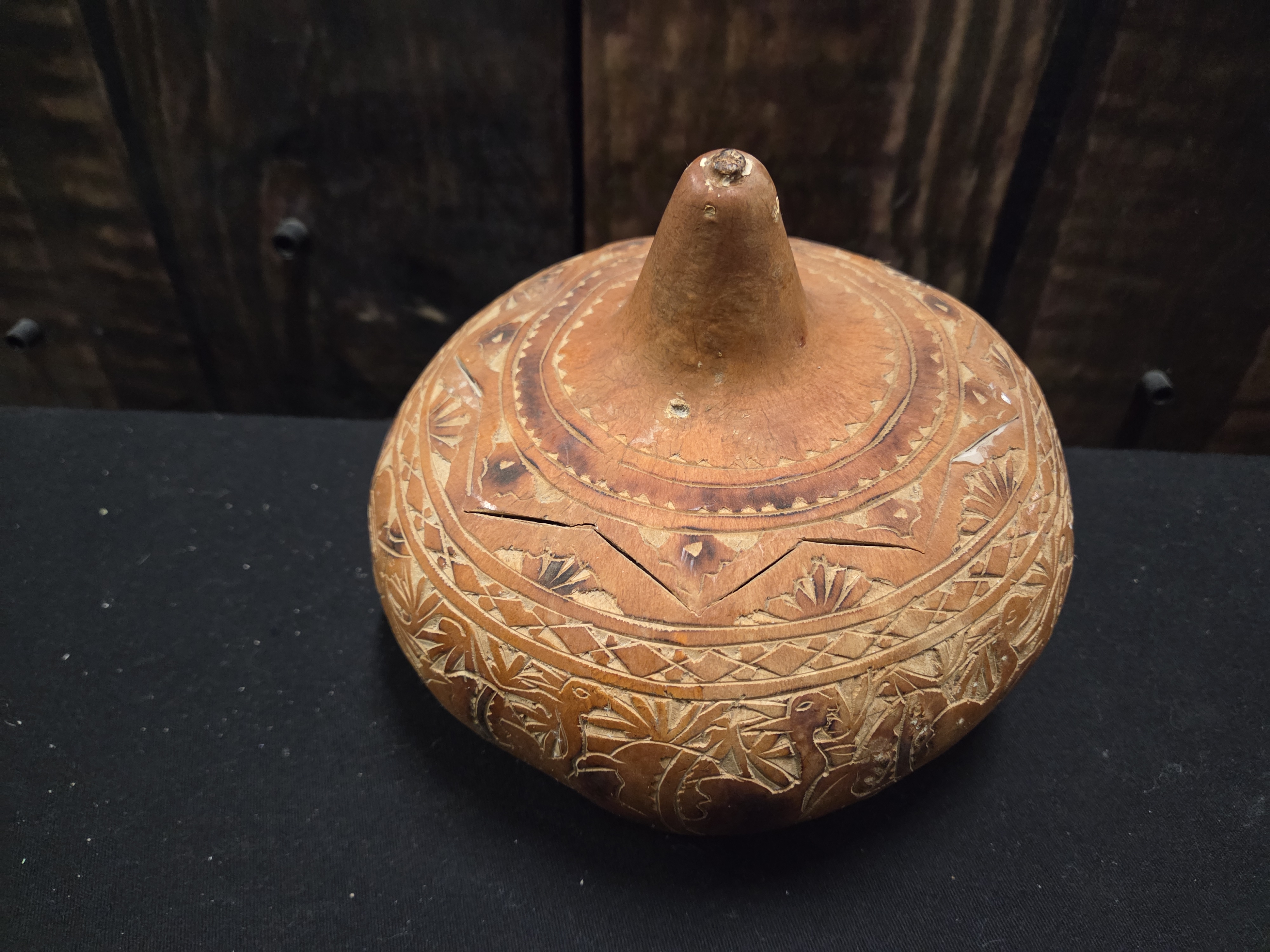Lot 61 Peruvian Hand Carved Mate Burilado Folk Art Gourd