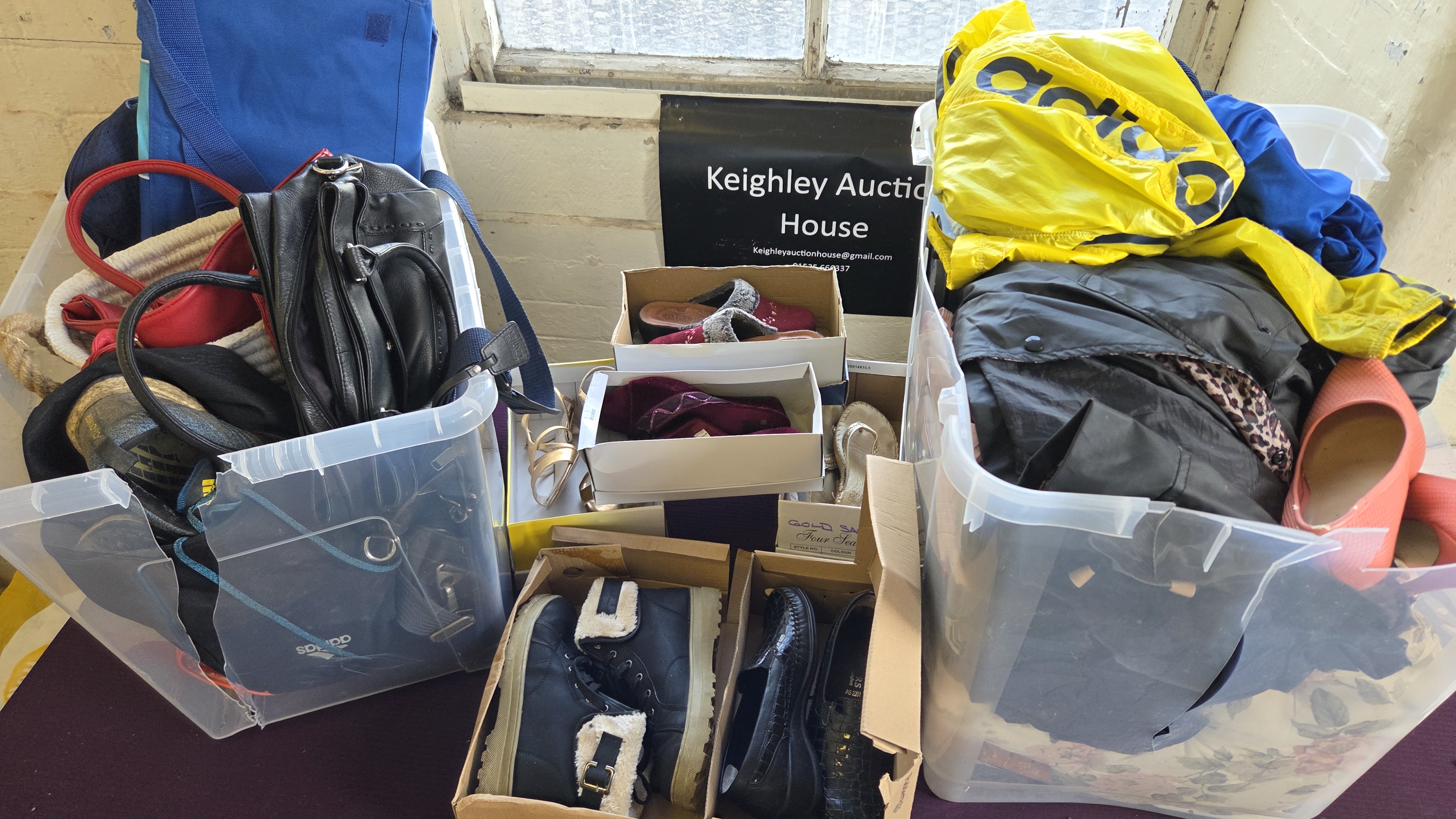 Lot 141 Two Boxes of Handbags, Clothing and Shoe, including Boxed
