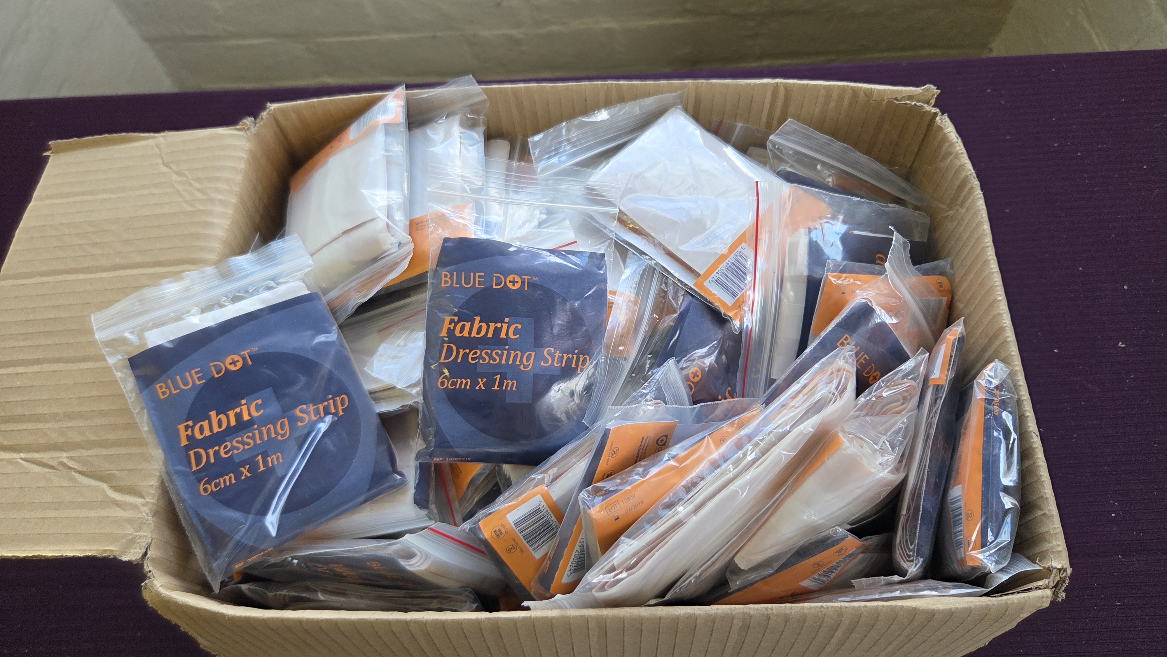 Lot 175 A Box of Blue Dot Fabric Dressing Strips