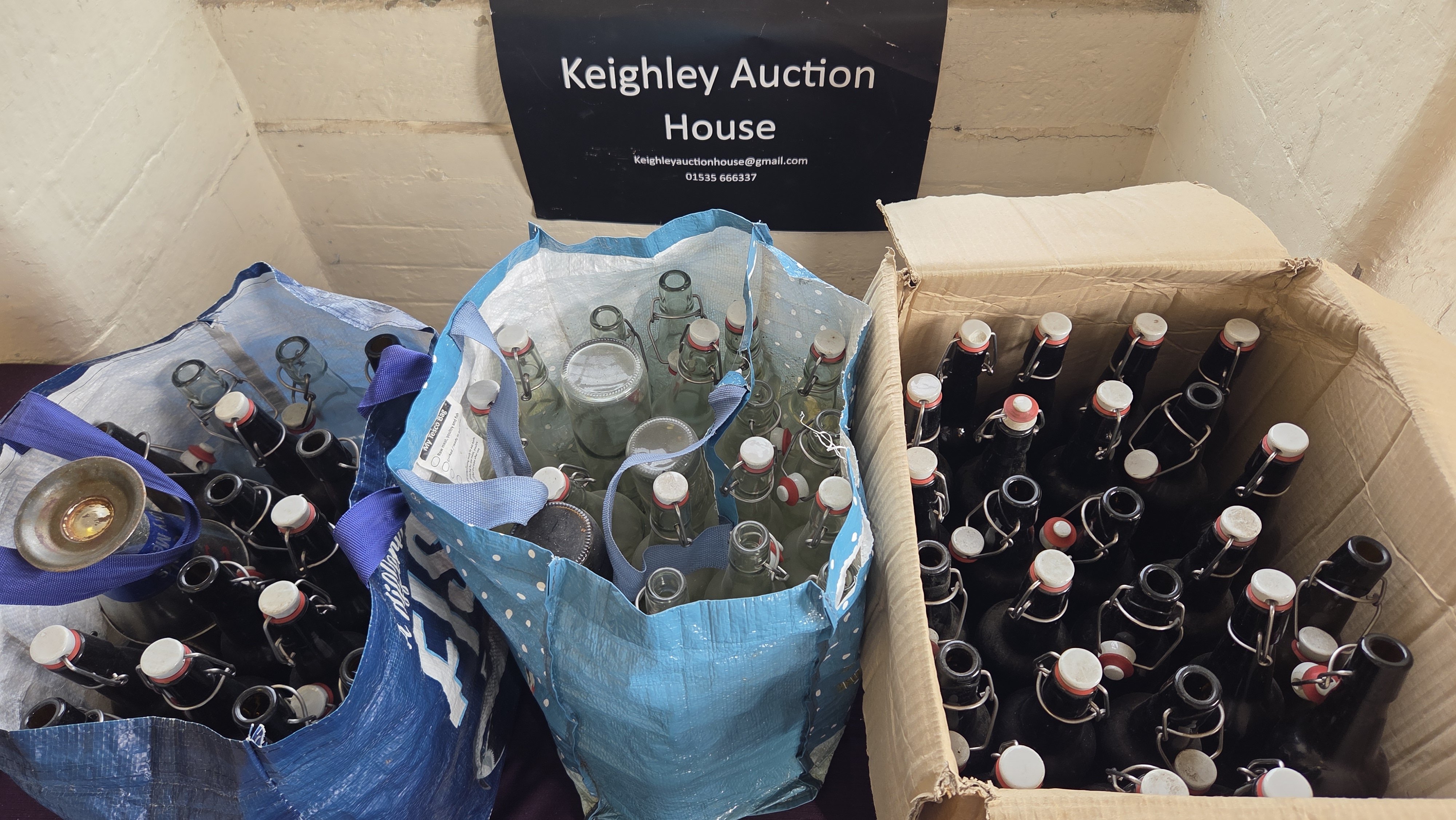 Lot 191 Two Bags and Box of Glass Swing-Top Bottles