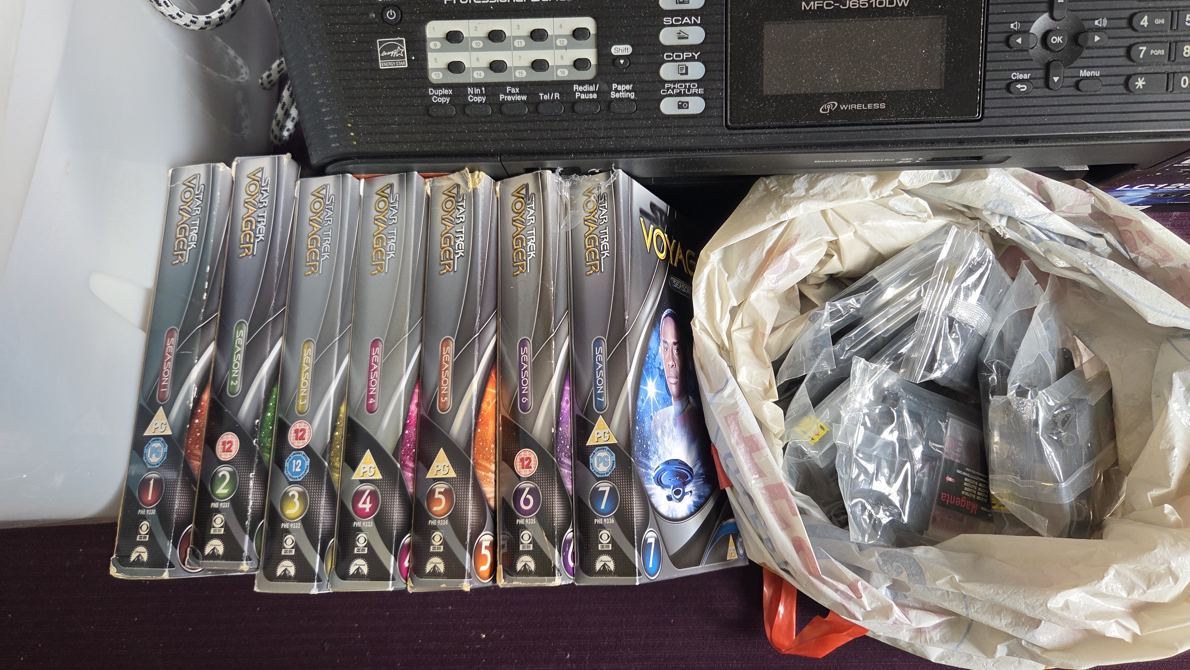 Lot 192 Box of Electronics, Including Brother Printers, Star Trek DVDs Boxset