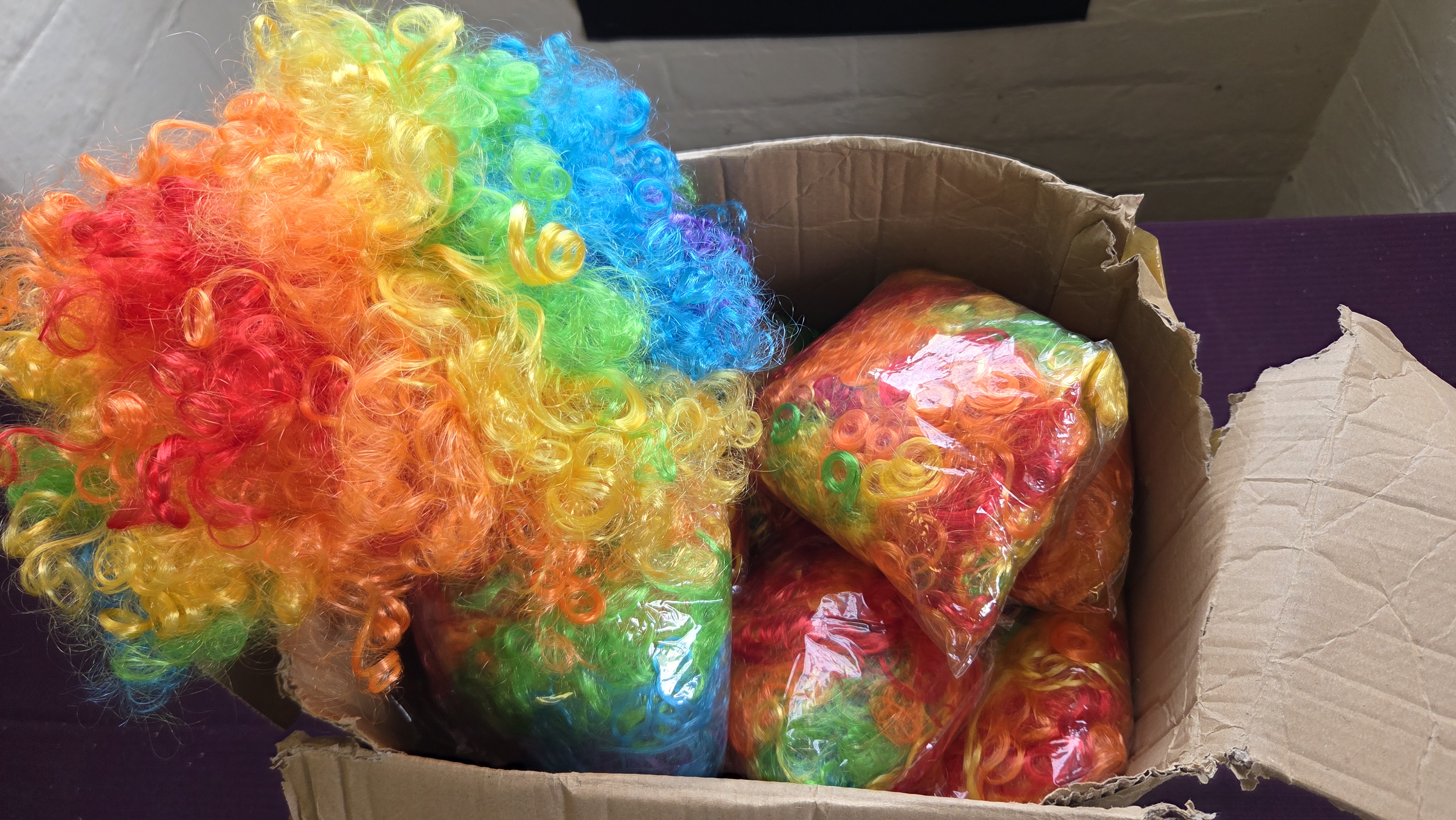 Lot 204 A Collection of Rainbow Coloured Curly Afro Clown Wigs