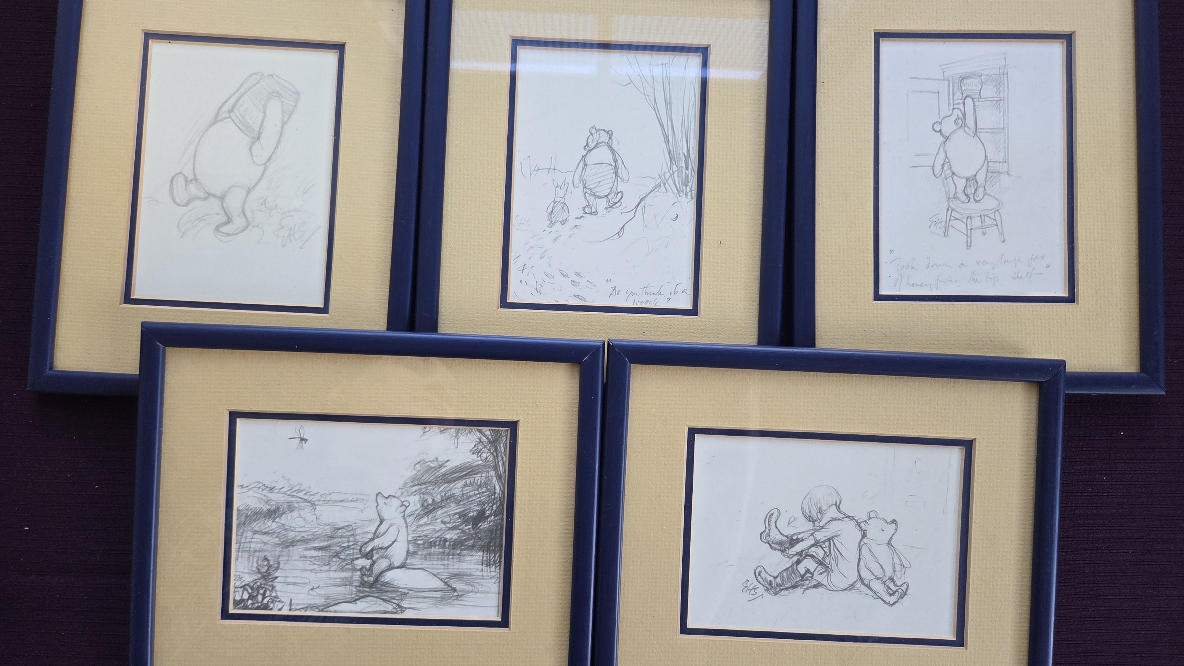 Lot 21 A Collection of Framed Winnie the Pooh Pencil Sketches