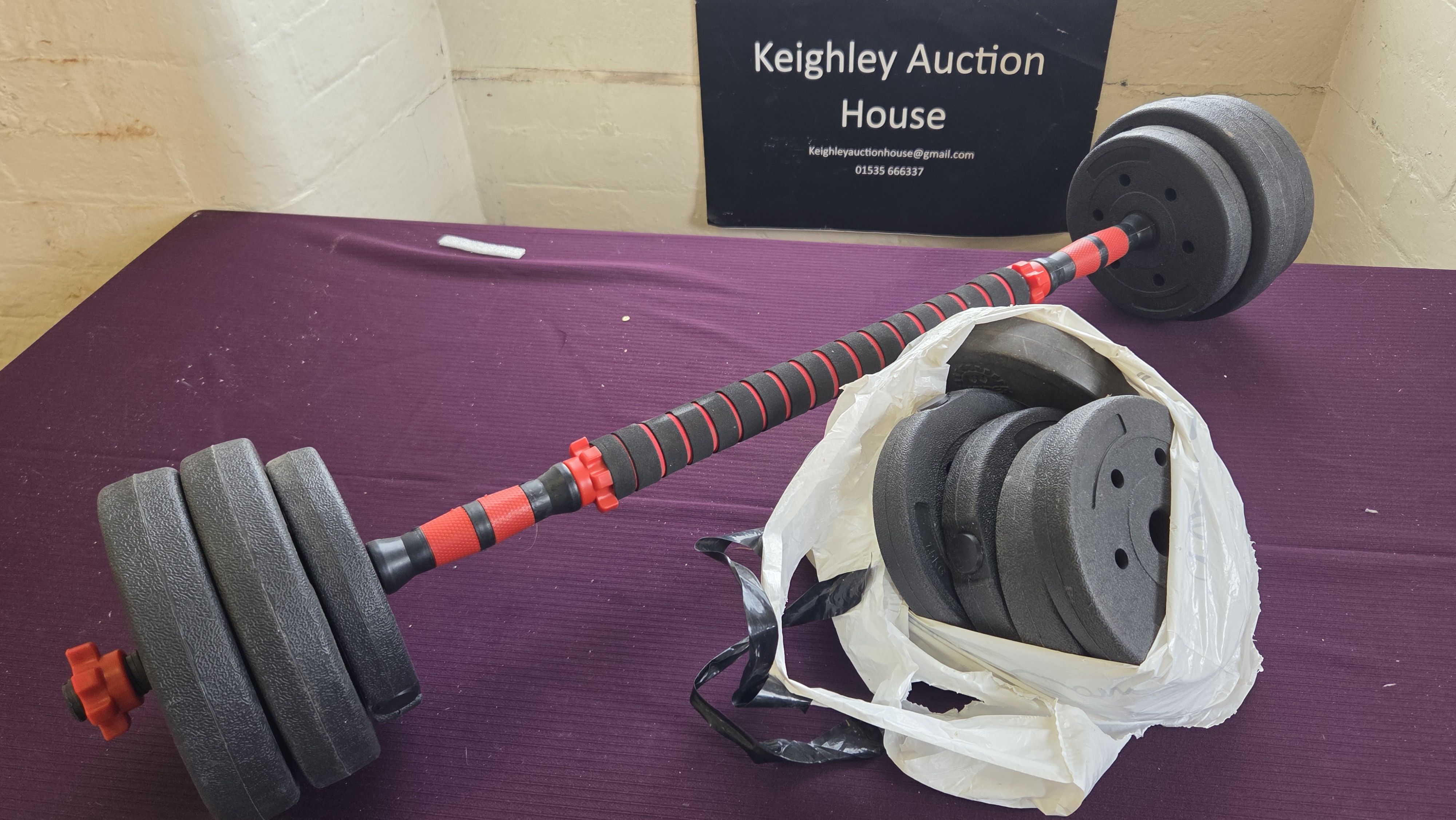 Lot 255 Adjustable Barbell and Weight Plate Set with Cushioned Bar