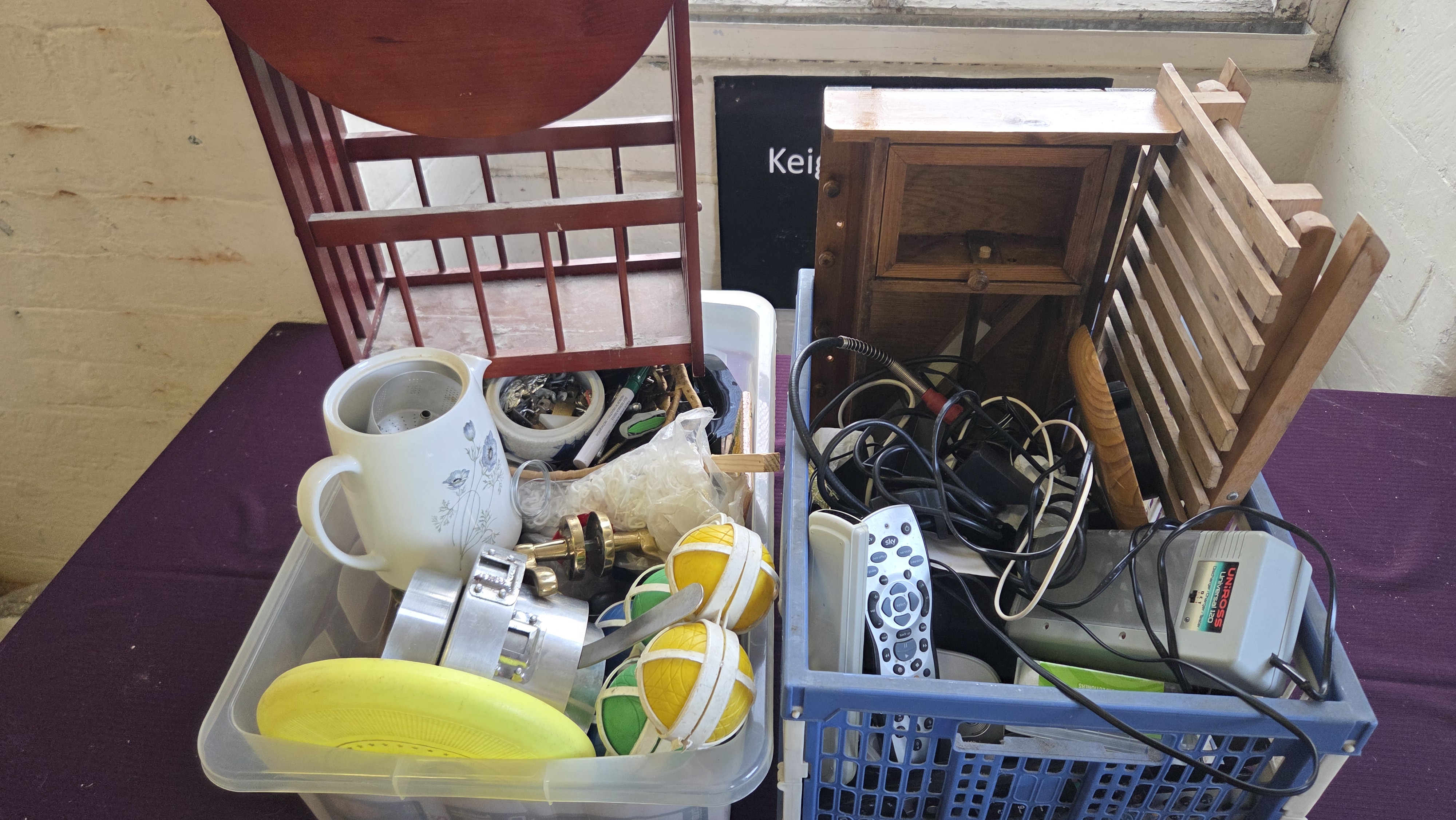 Lot 318 Two Boxes of Household Sundries, Small Furniture, and Electronics