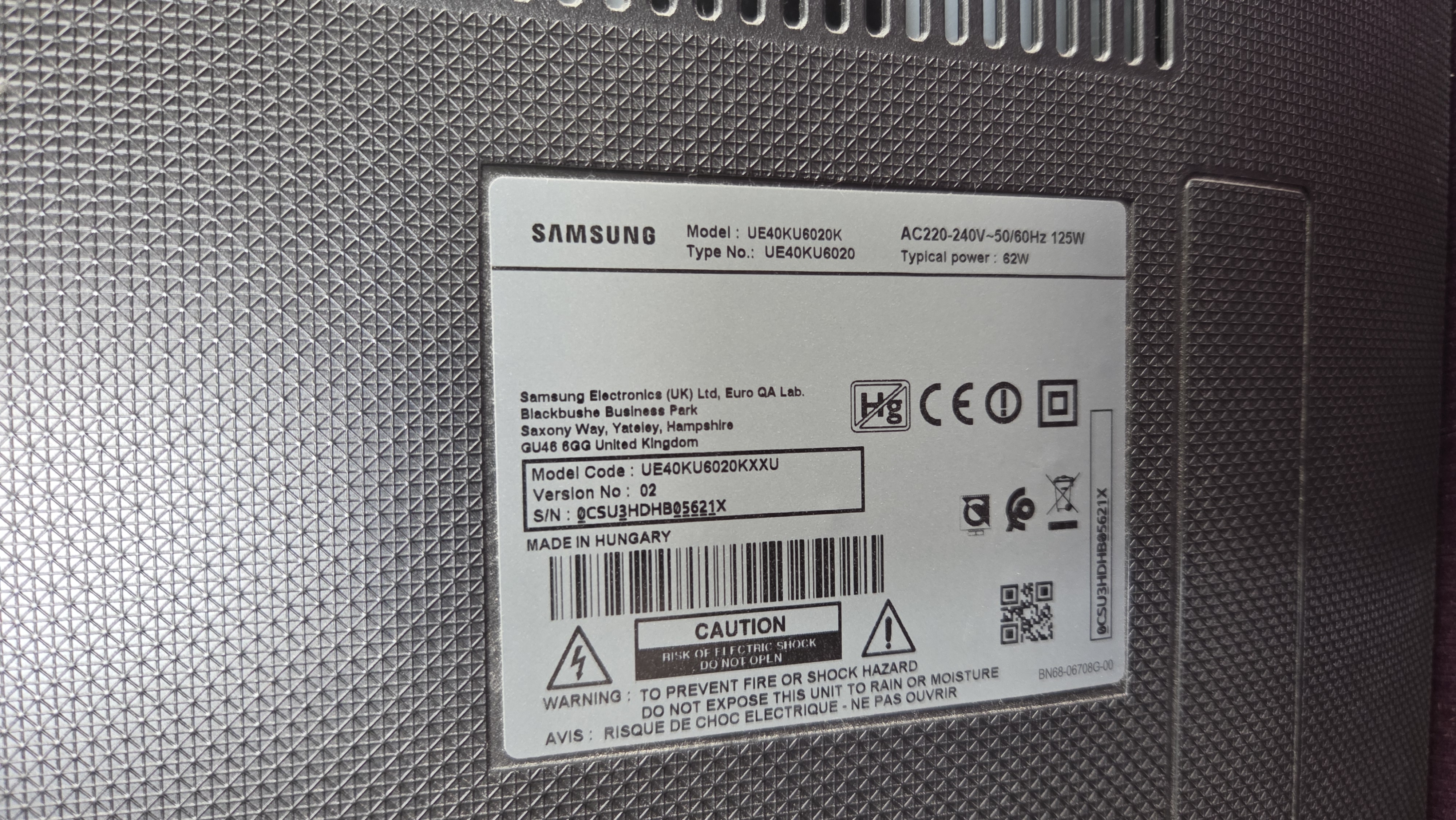 Lot 350 Samsung 40 Inch 4K Ultra HD Television in working order with remote and bracket