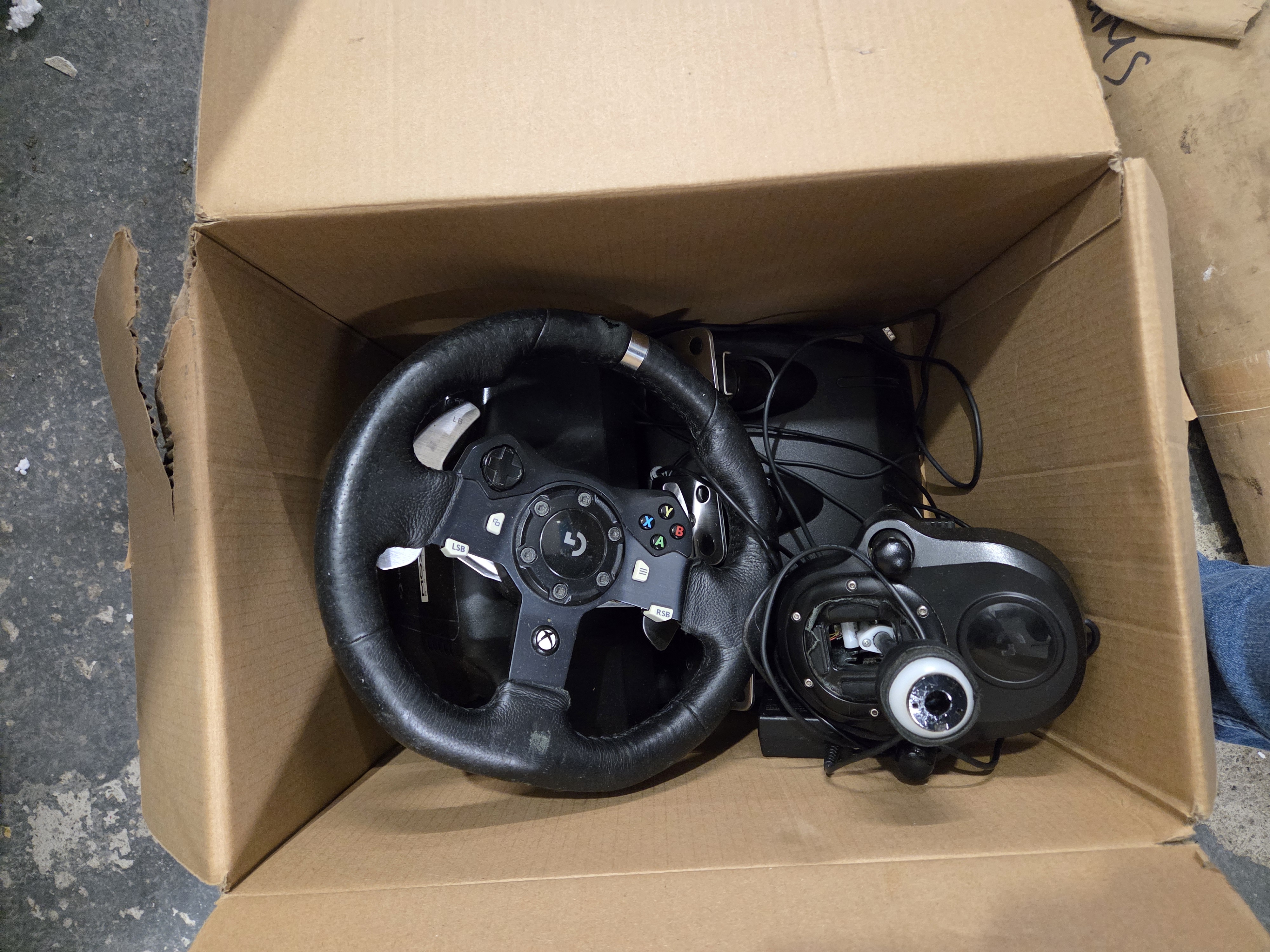 Lot 369 A Logitech G920 Driving Force Racing Wheel Pedals and Shifter Set for Xbox and PC
