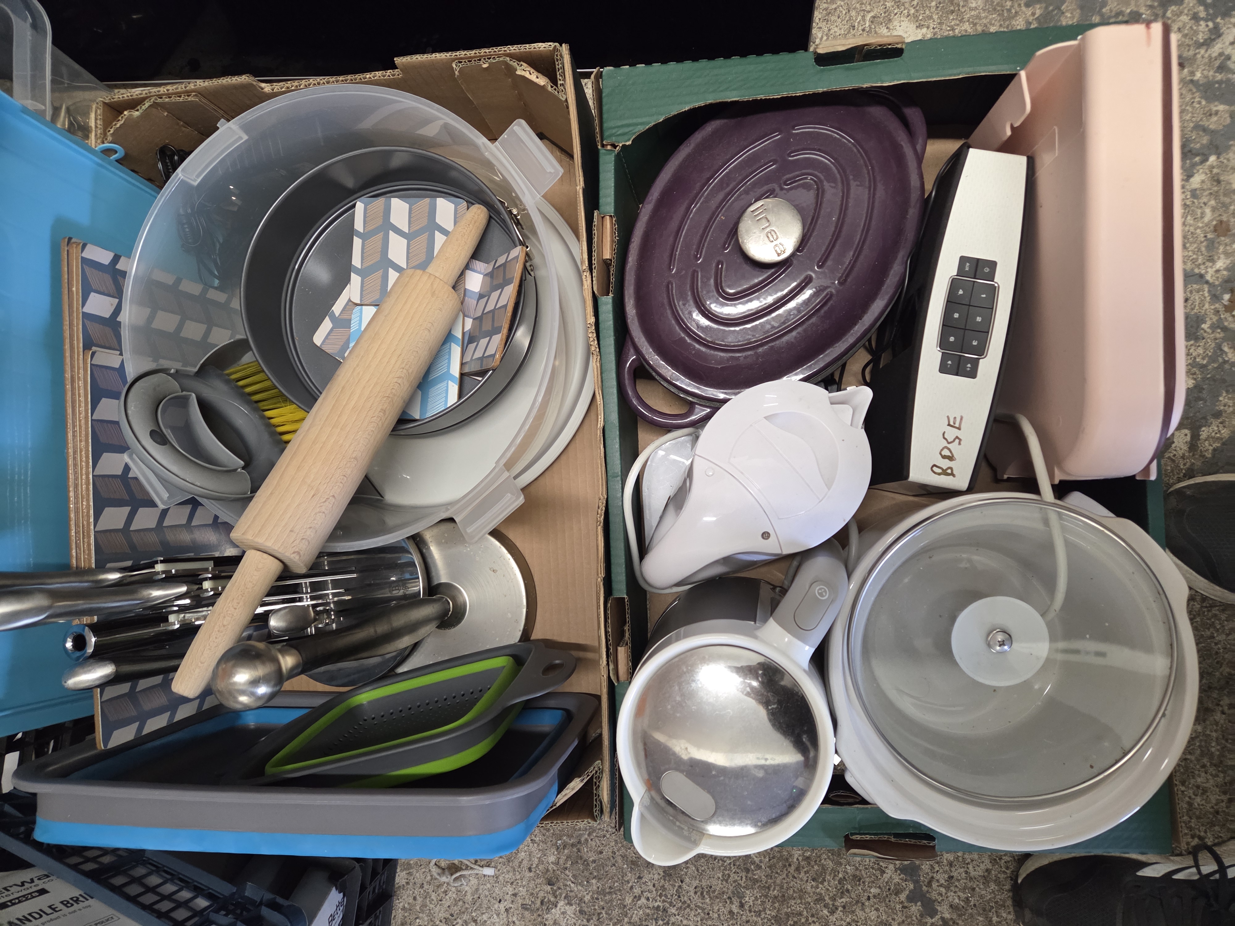 Lot 376 A Collection of Kitchenware and Small Domestic Appliances including Linea and Bose. Slow Cooker w/o
