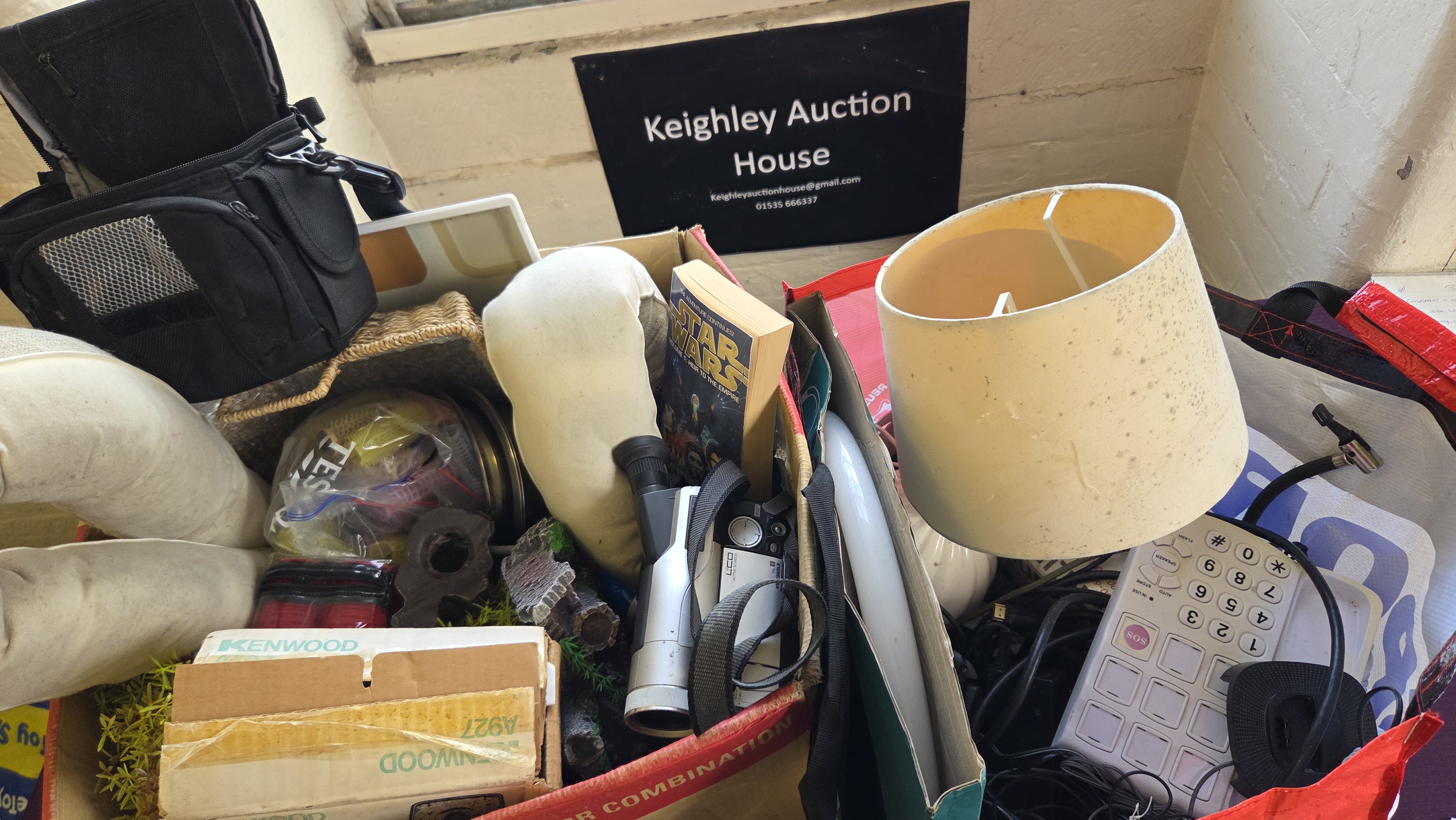 Lot 60 A Box and Bag of Miscellaneous Household Items and Electronics