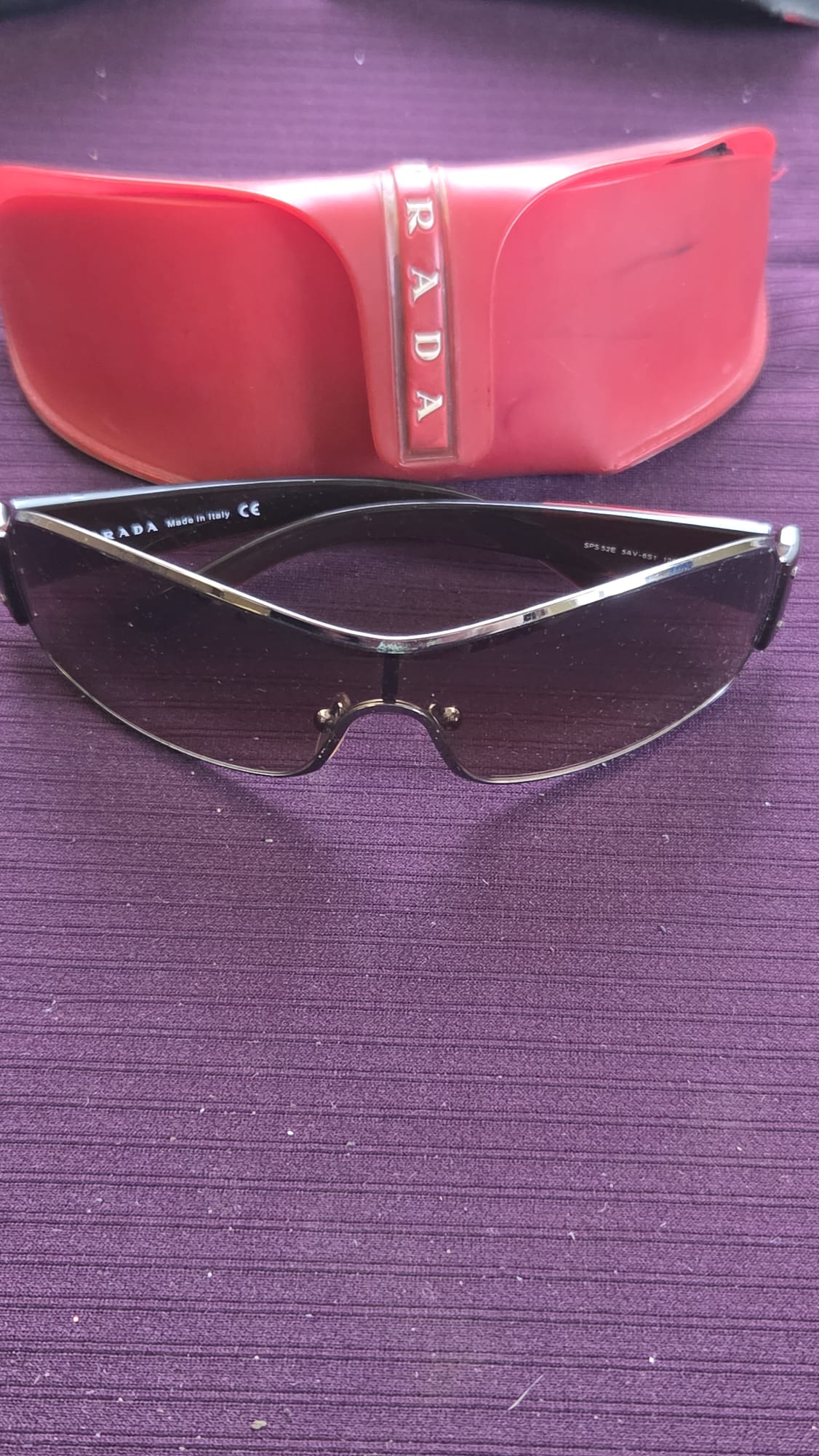 Lot 612 Prada Linea Rossa SPS 52E Silver Tone Shield Sunglasses with Case