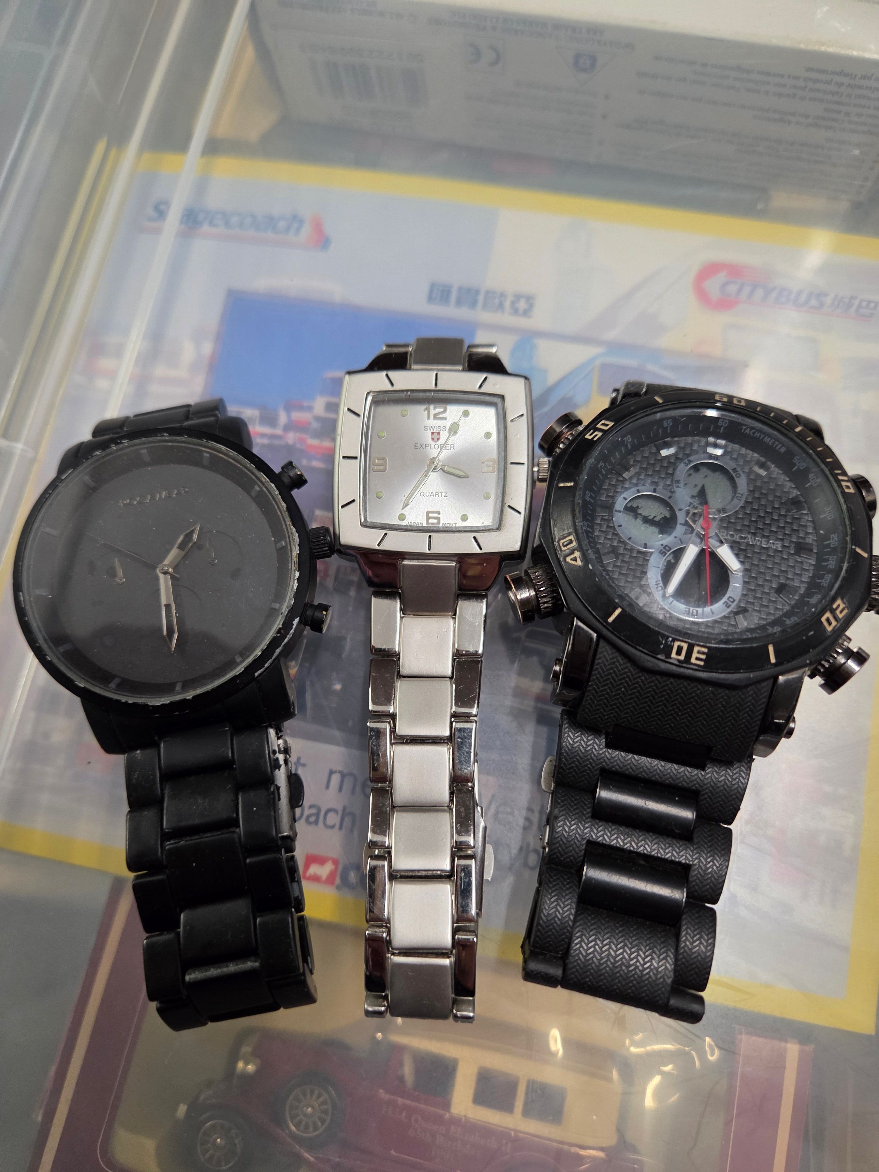 Lot 619 A Trio of Wristwatches Including Fossil and Swiss Explorer