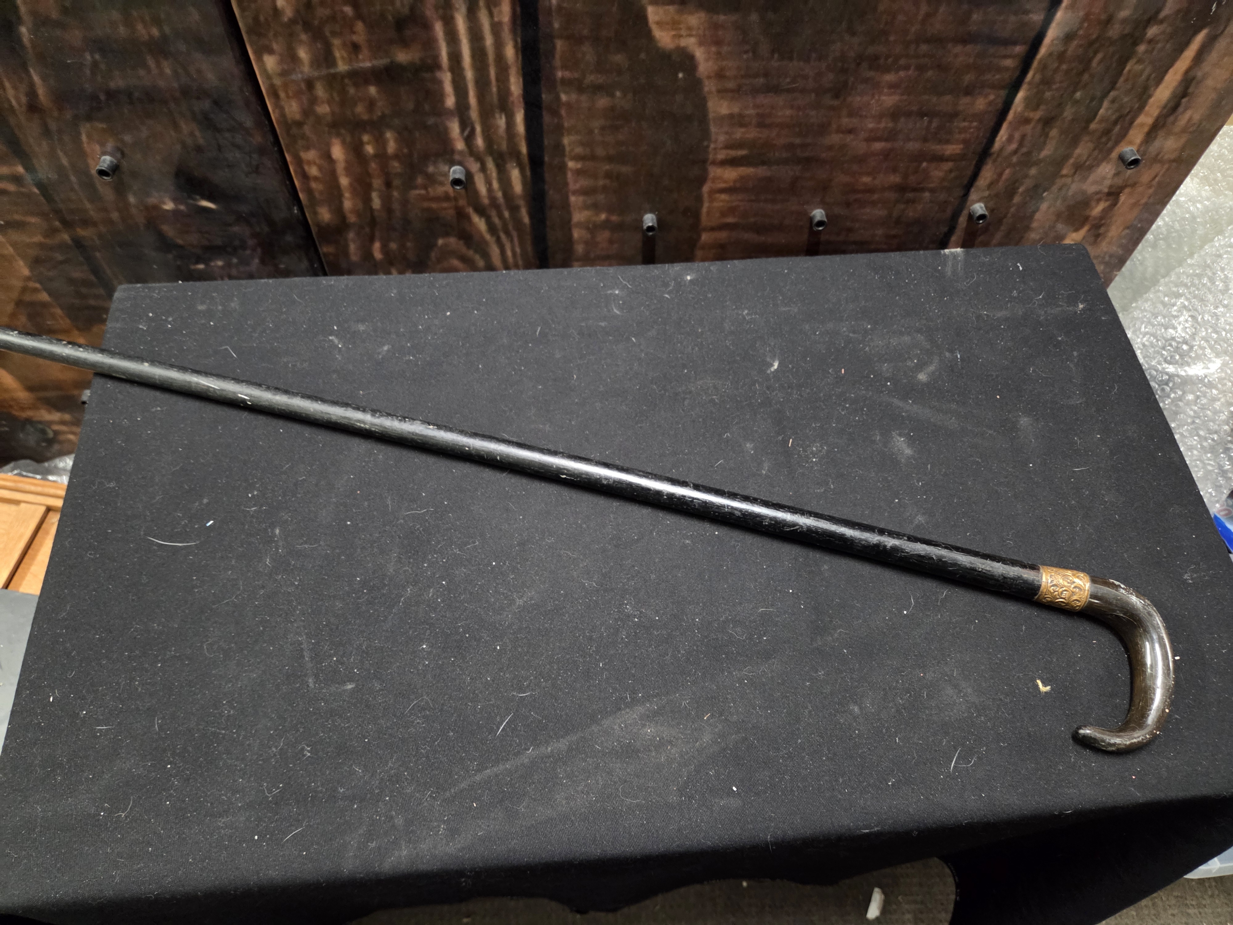 Lot 624 A Late Victorian Horn Handled Walking Stick with Ornate Yellow Metal Collar