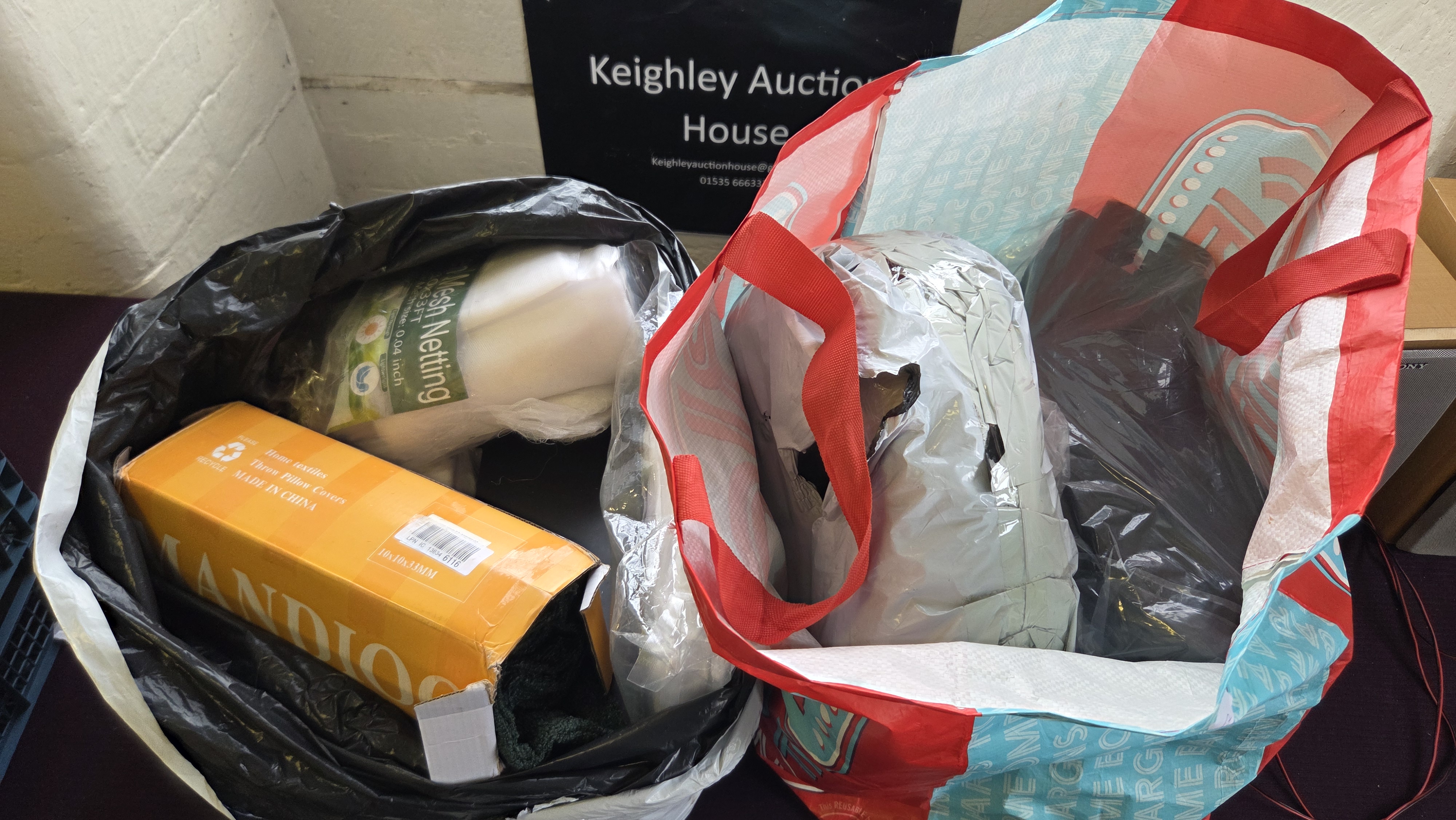 Lot 87 Two Bags of New Garden Netting, Pillow Covers, and Buffing Wheels