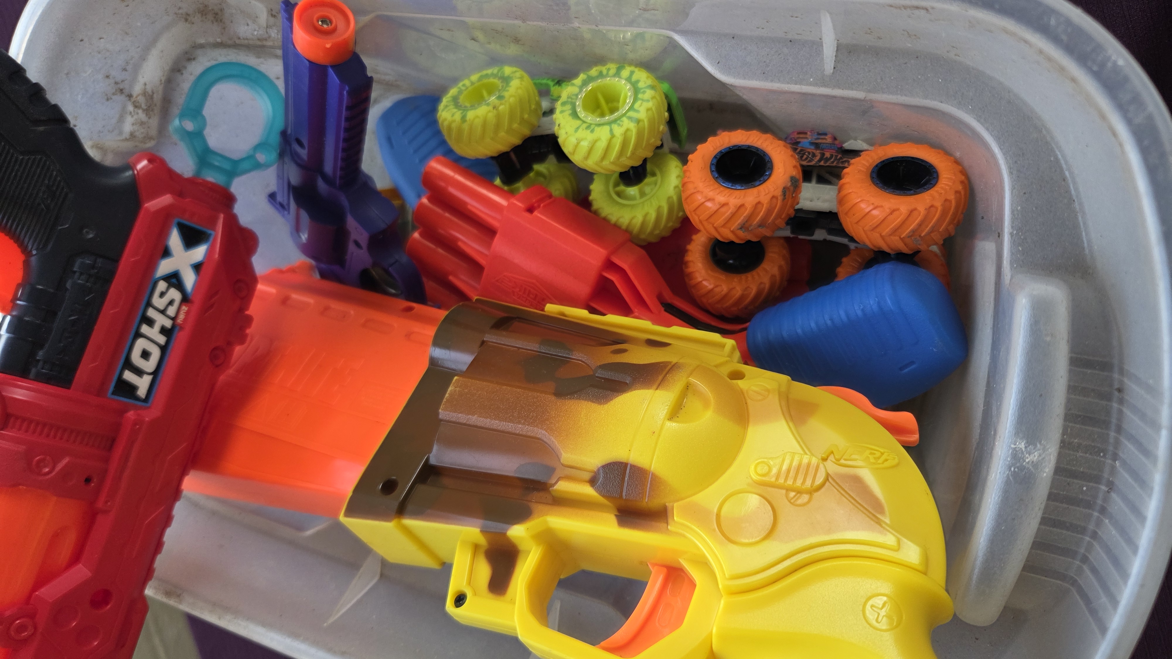 Lot 93 Two Boxes of Assorted Toys and Vintage Sporting Goods
