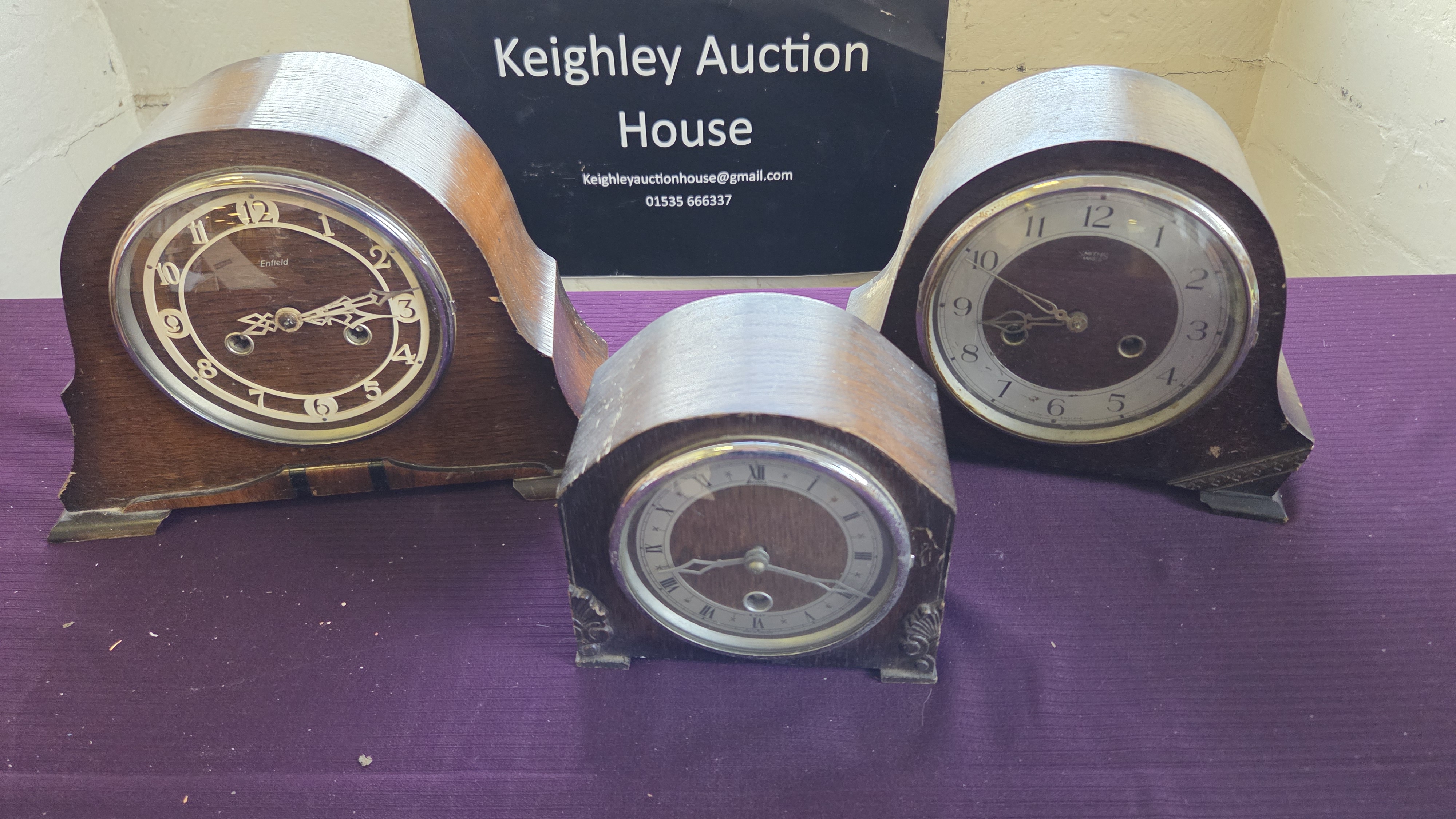Lot 96 A Trio of Enfield and Smiths Wooden Mantle Clocks