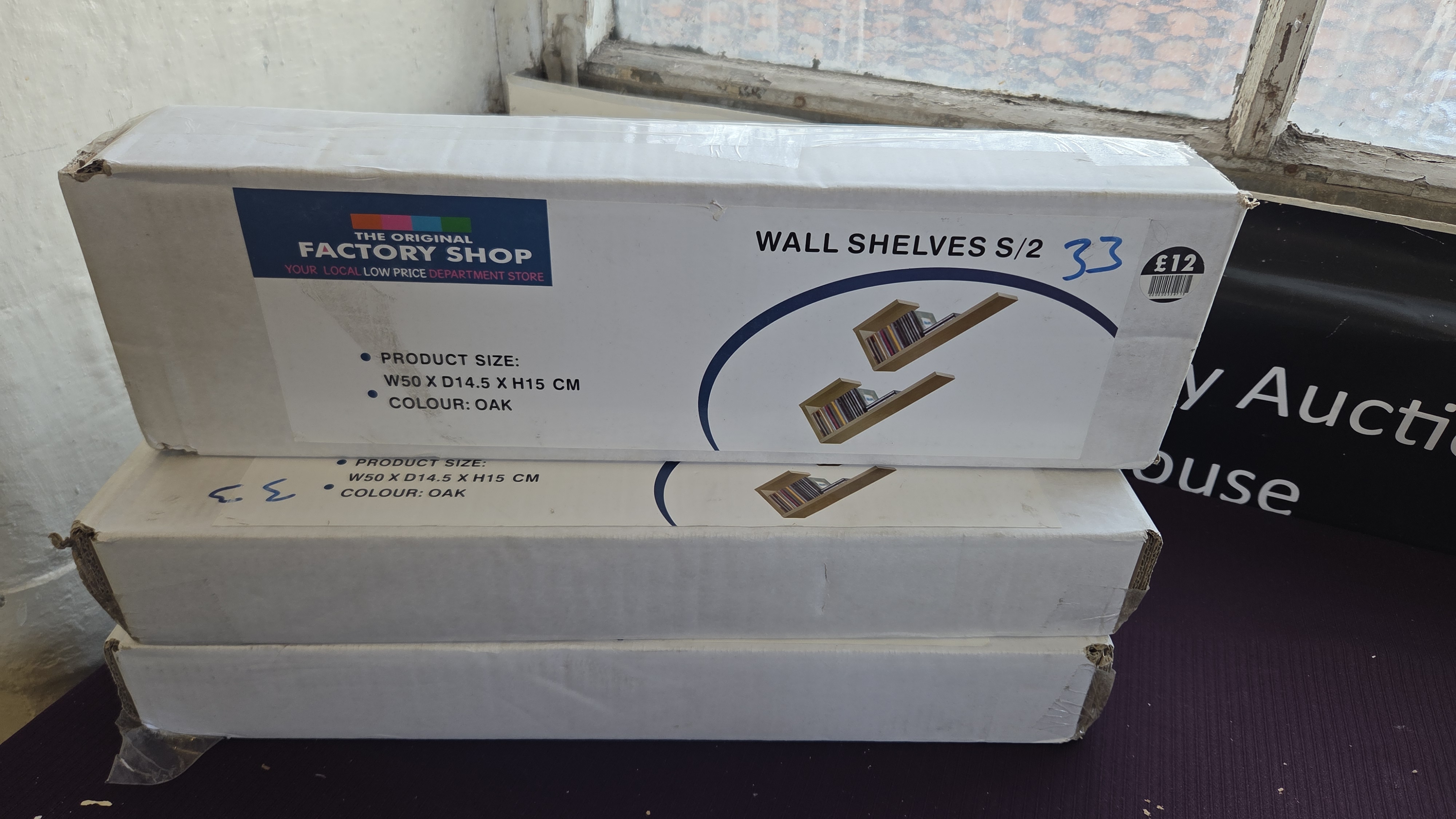 Lot 130 Three Sets of The Original Factory Shop Oak Effect Wall Shelves