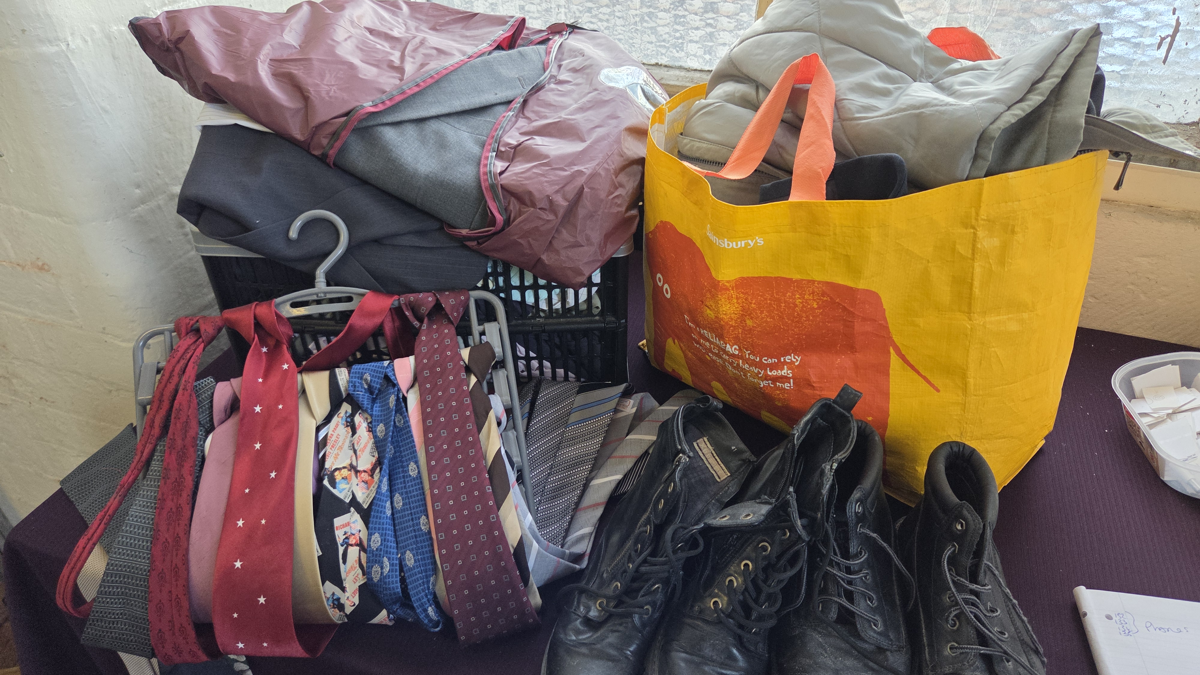 Lot 136 An Assortment of Men's Apparel Footwear and Accessories Including Neckties and Boots