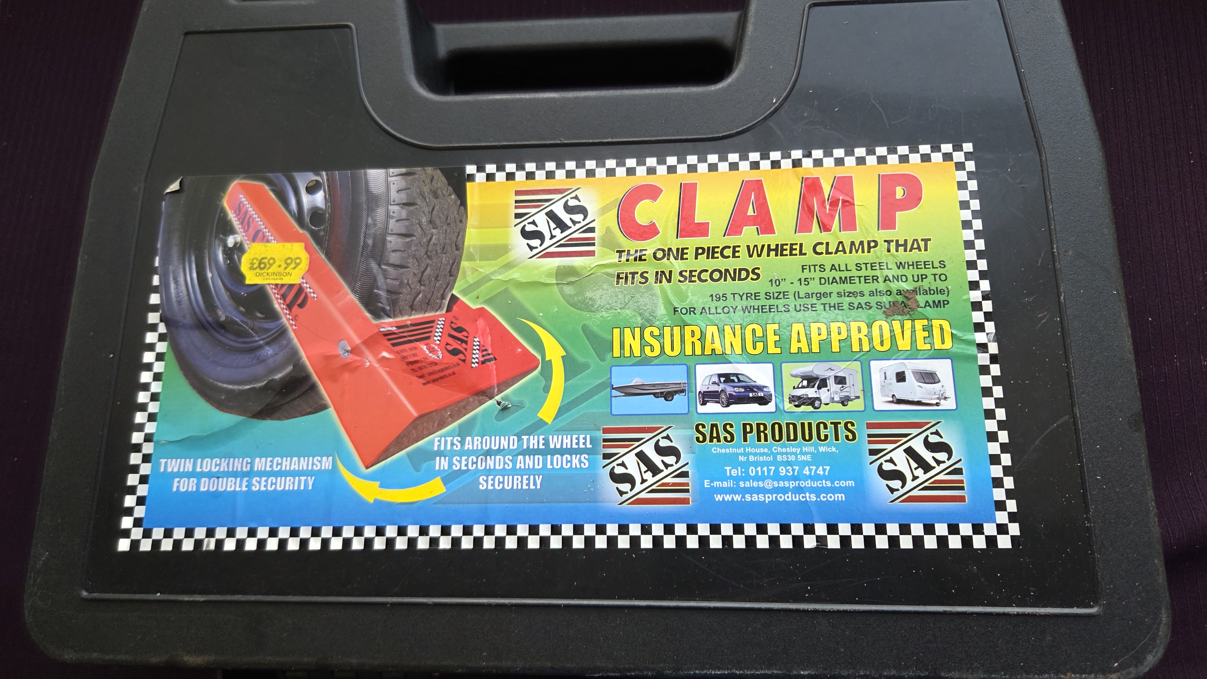 Lot 142 SAS Products One Piece Vehicle Security Wheel Clamp