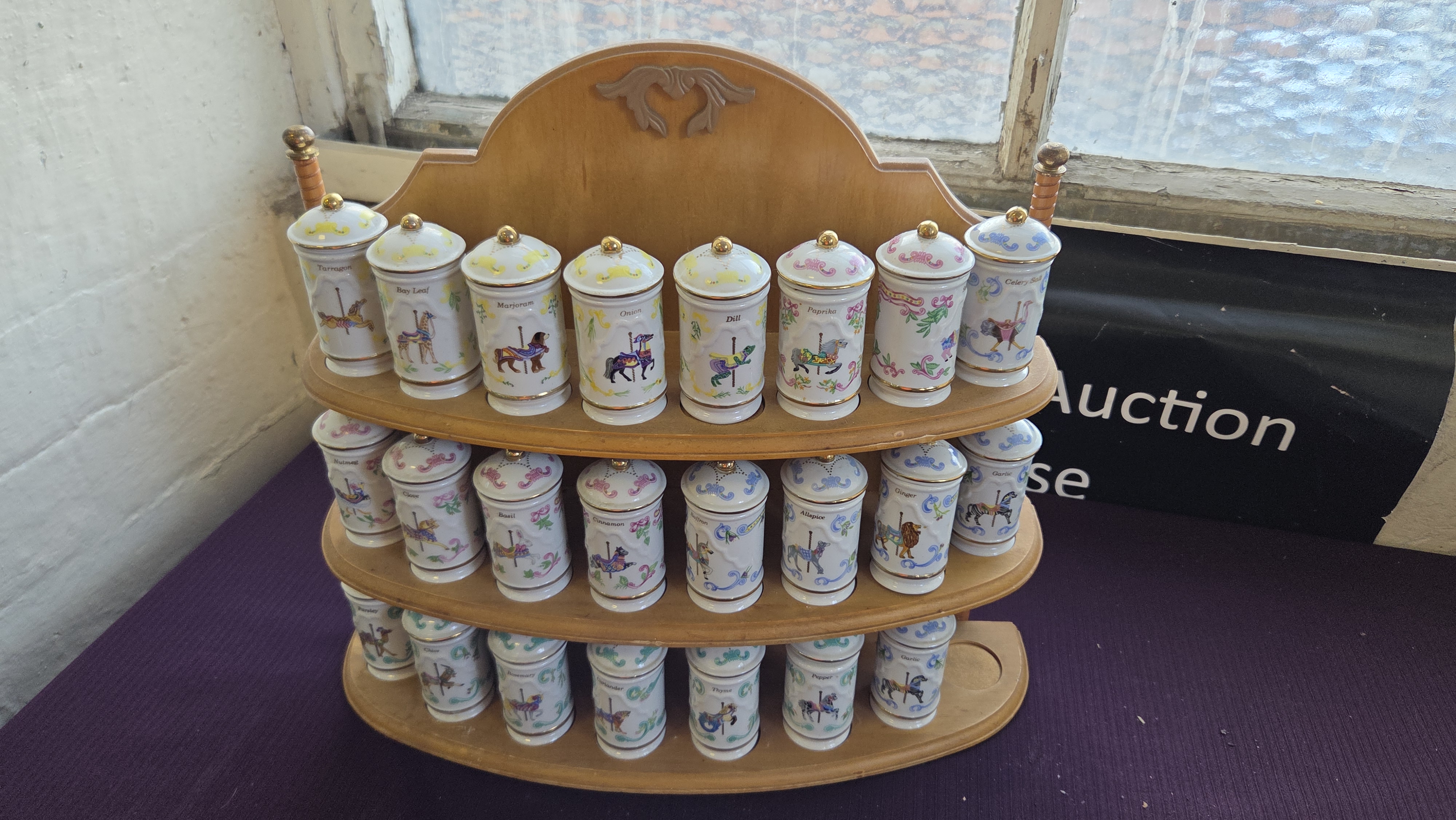 Lot 146 A Set of Lenox The Spice Carousel Fine Porcelain Spice Jars and Wooden Rack