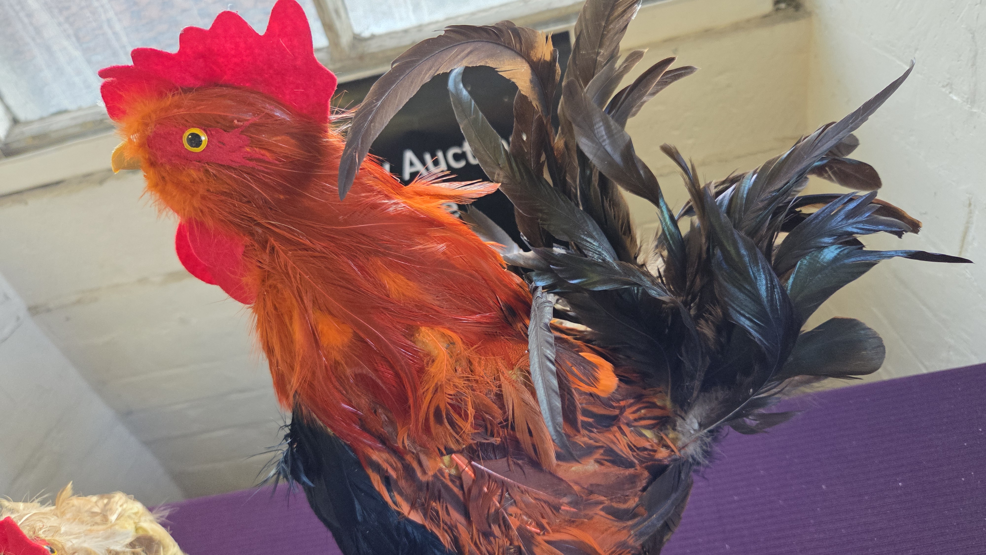Lot 203 A Pair of Feathered Artificial Rooster and Hen Figures