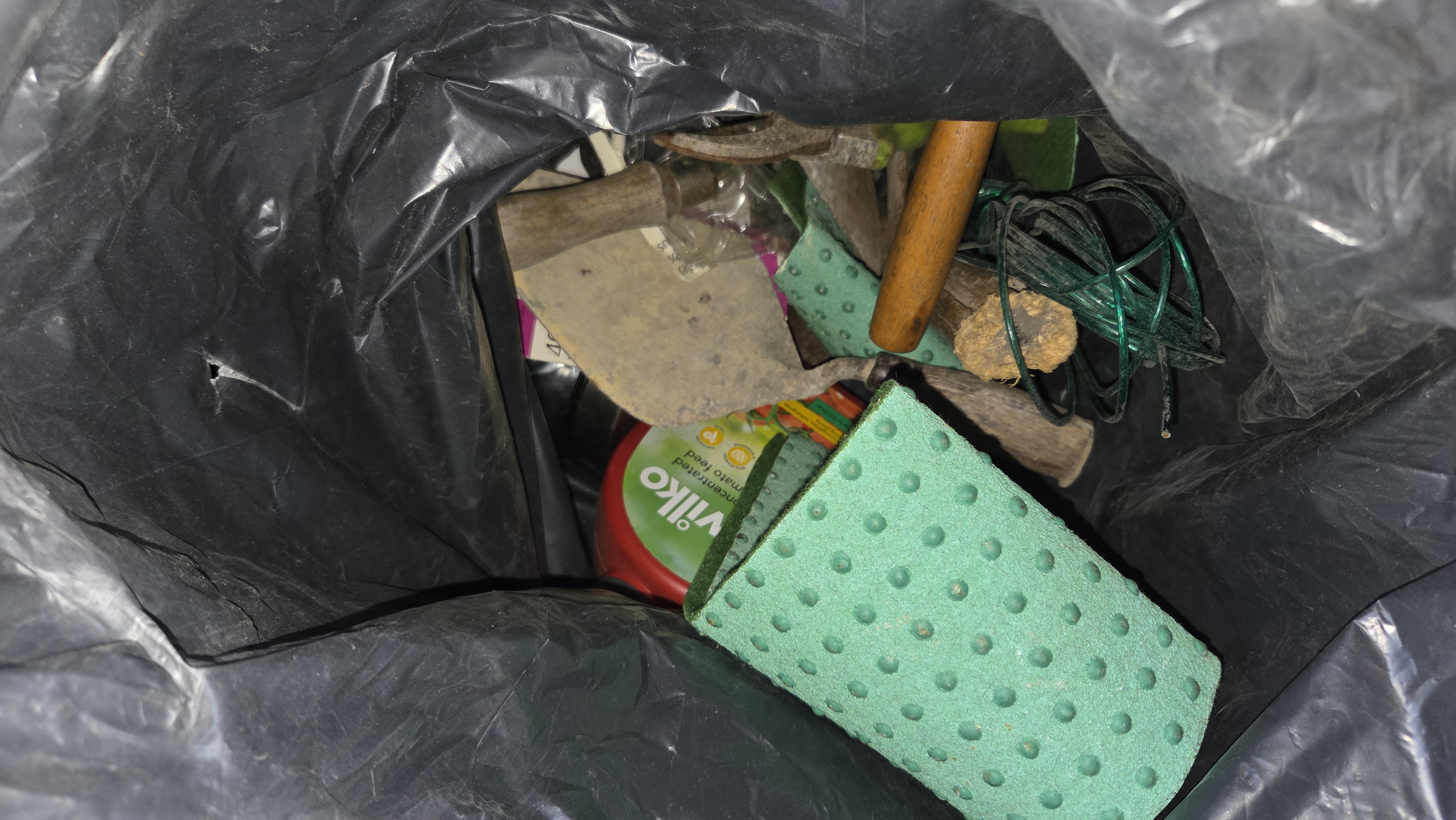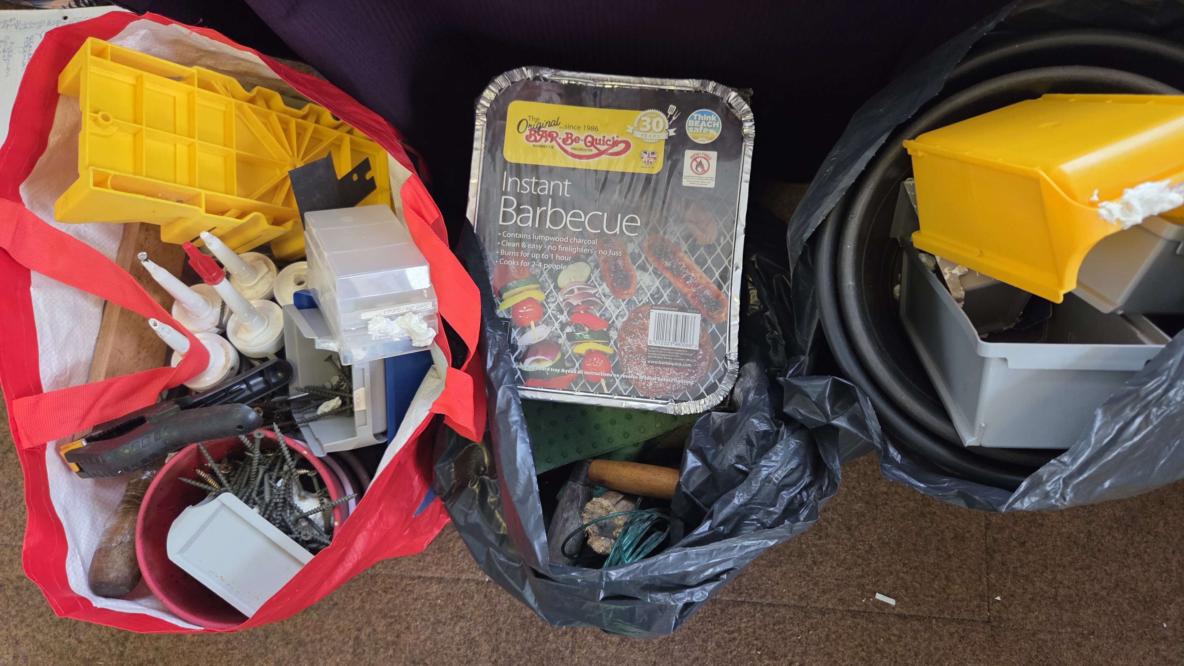 Lot 301 Three Bags of Gardening, DIY, and Household Goods including a Bar-Be-Quick Instant Barbecue