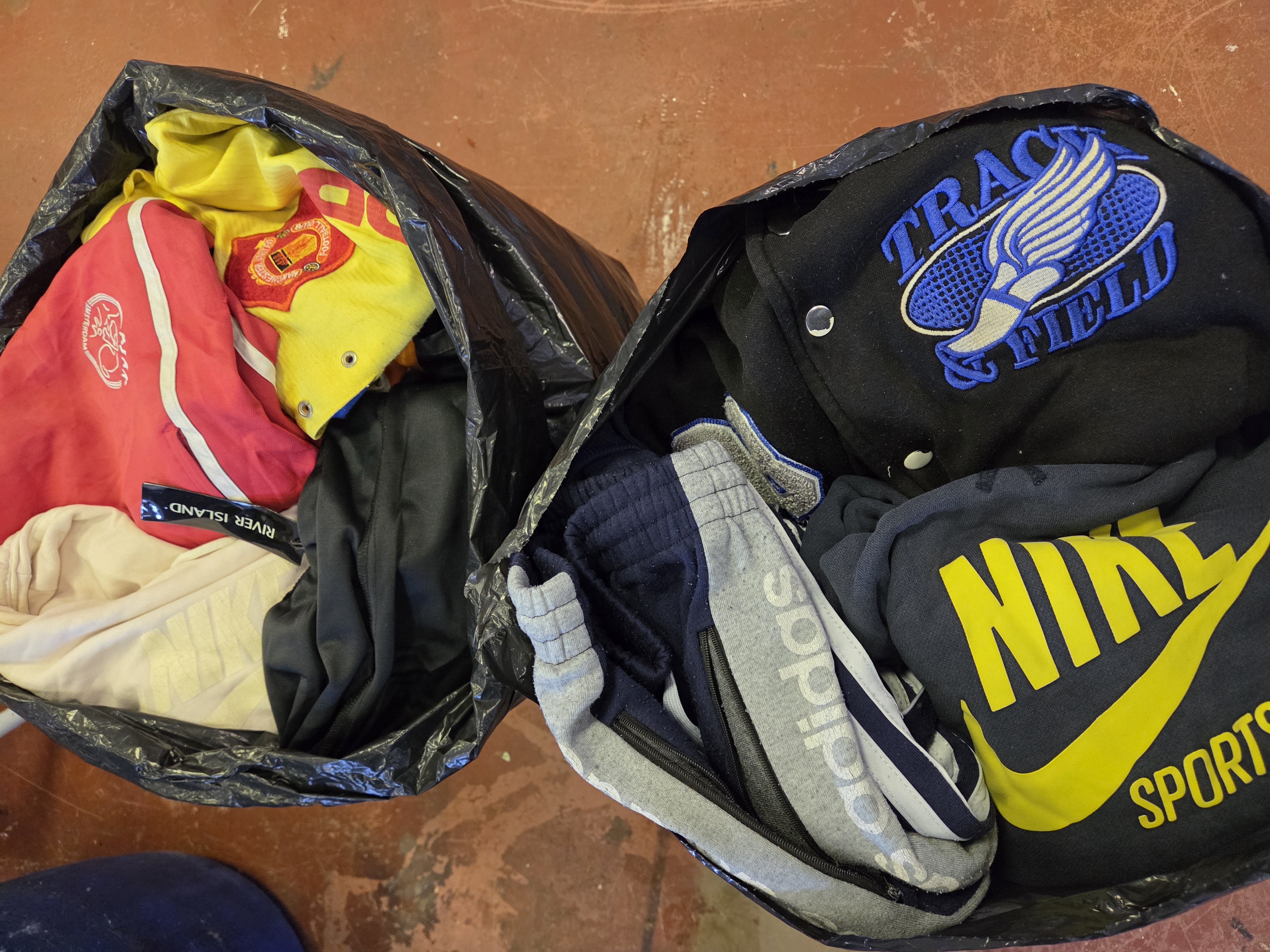 Lot 383 A Collection of Mixed High-Street and Athletic Apparel Including Nike, Adidas, and Football Merchandise