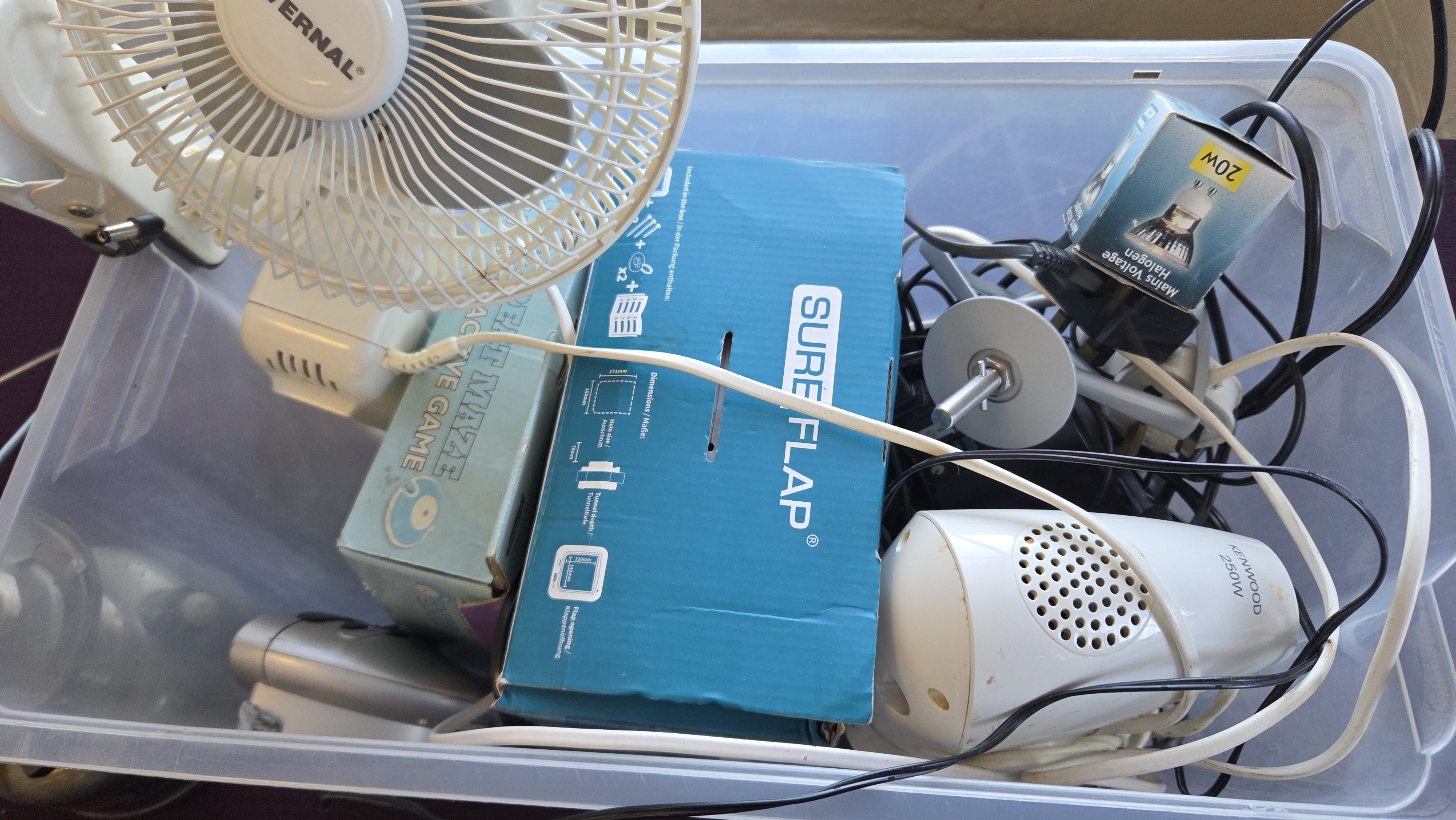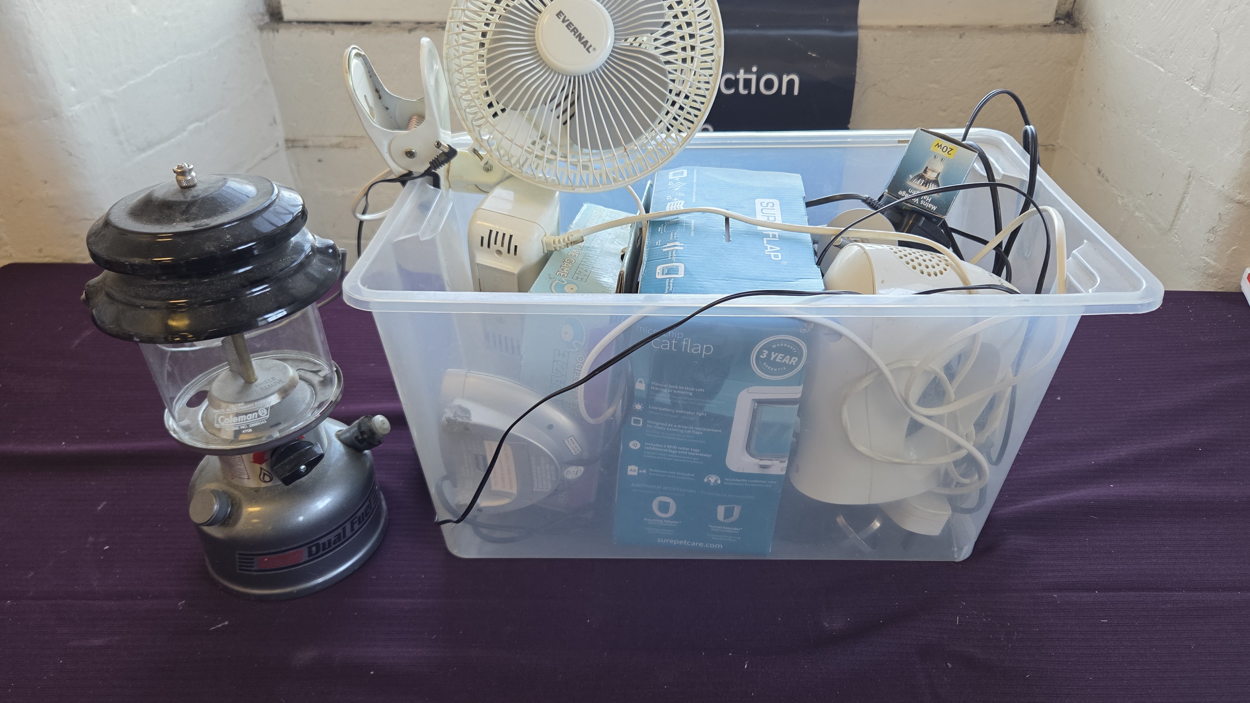 Lot 39 An Assortment of Household Electronics and Camping Equipment including a Coleman Dual Fuel Lantern