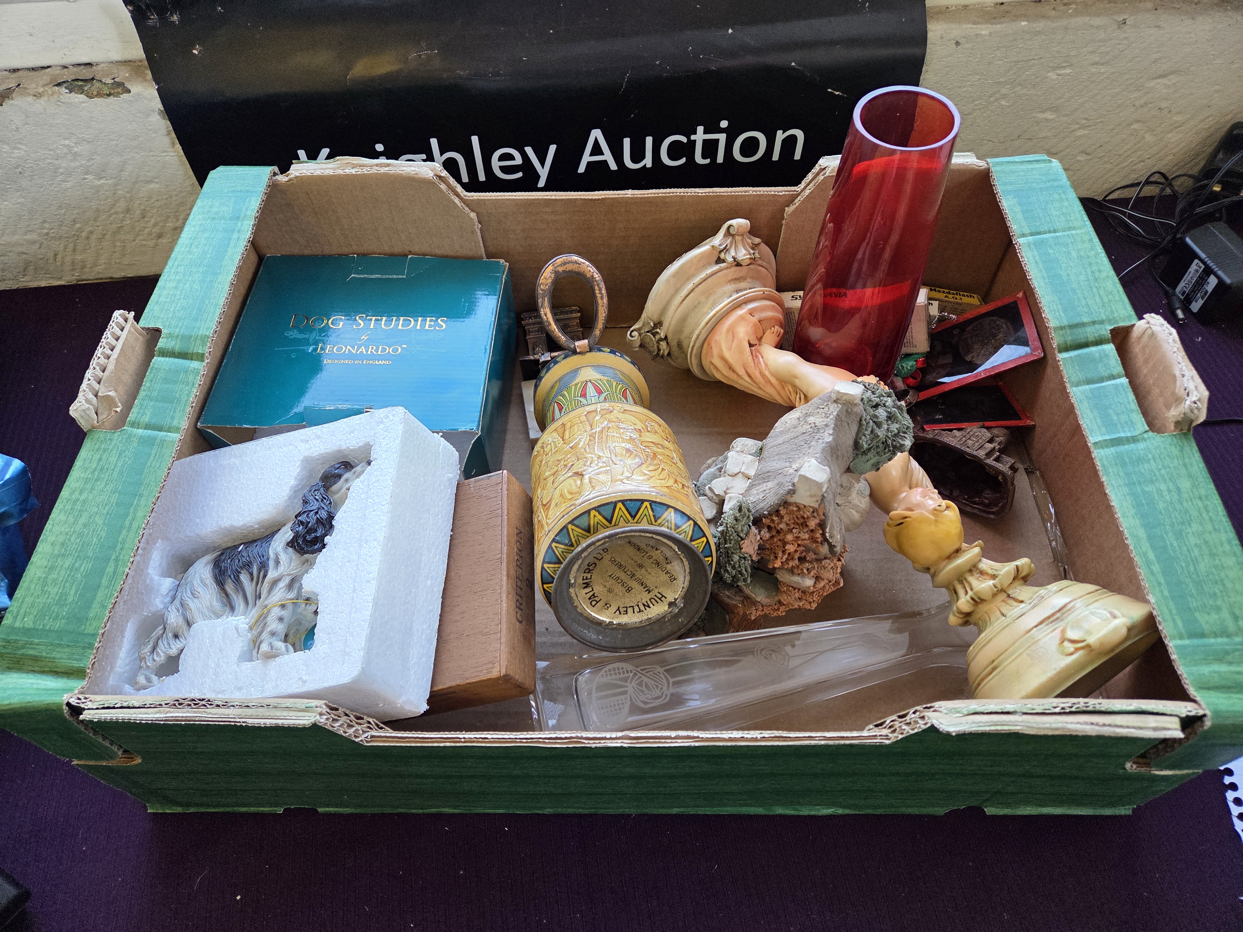 Lot 390 A Collection of Decorative Items and Collectibles including a Huntley & Palmers Biscuit Barrel and a Leonardo Dog Study Figurine