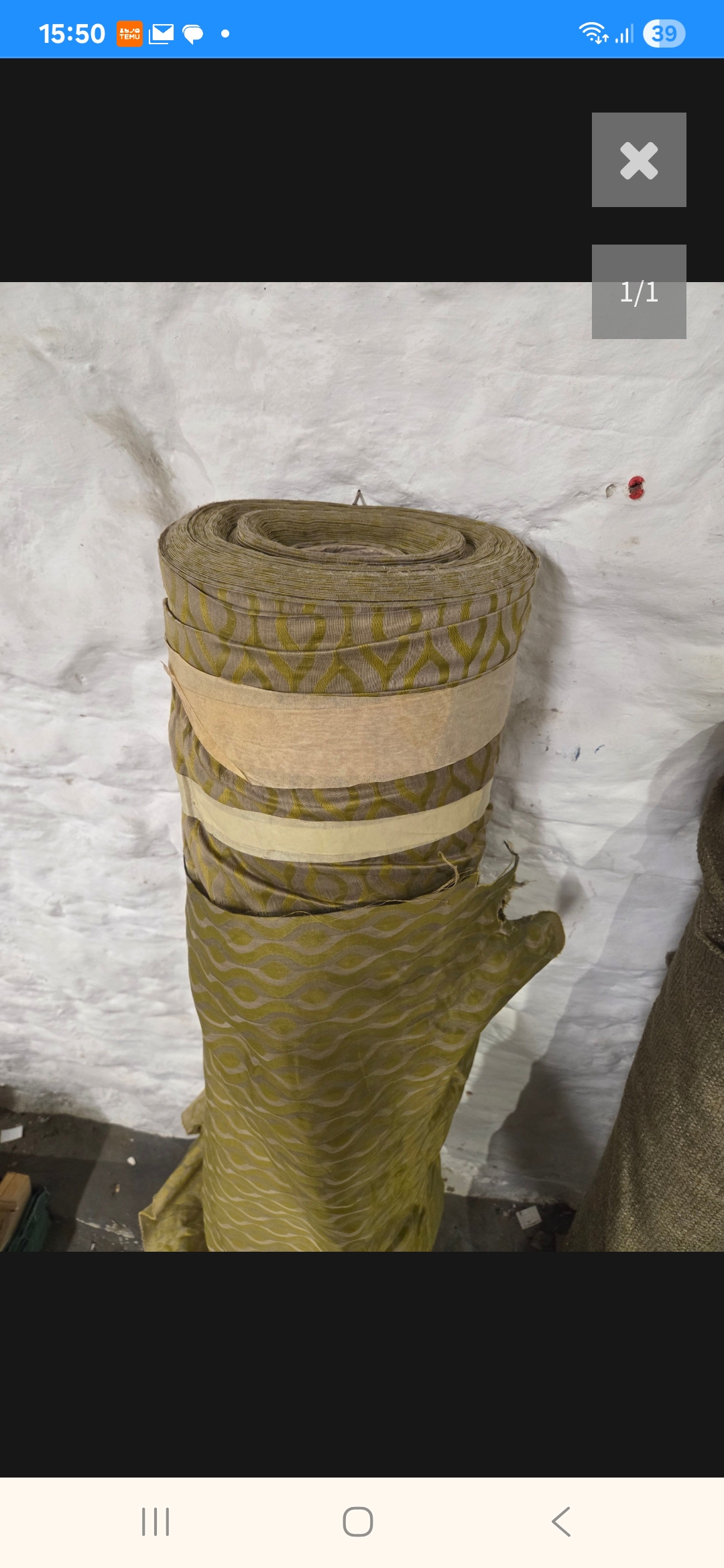 Lot 404 A roll of mid-century style olive green jacquard furnishing fabric