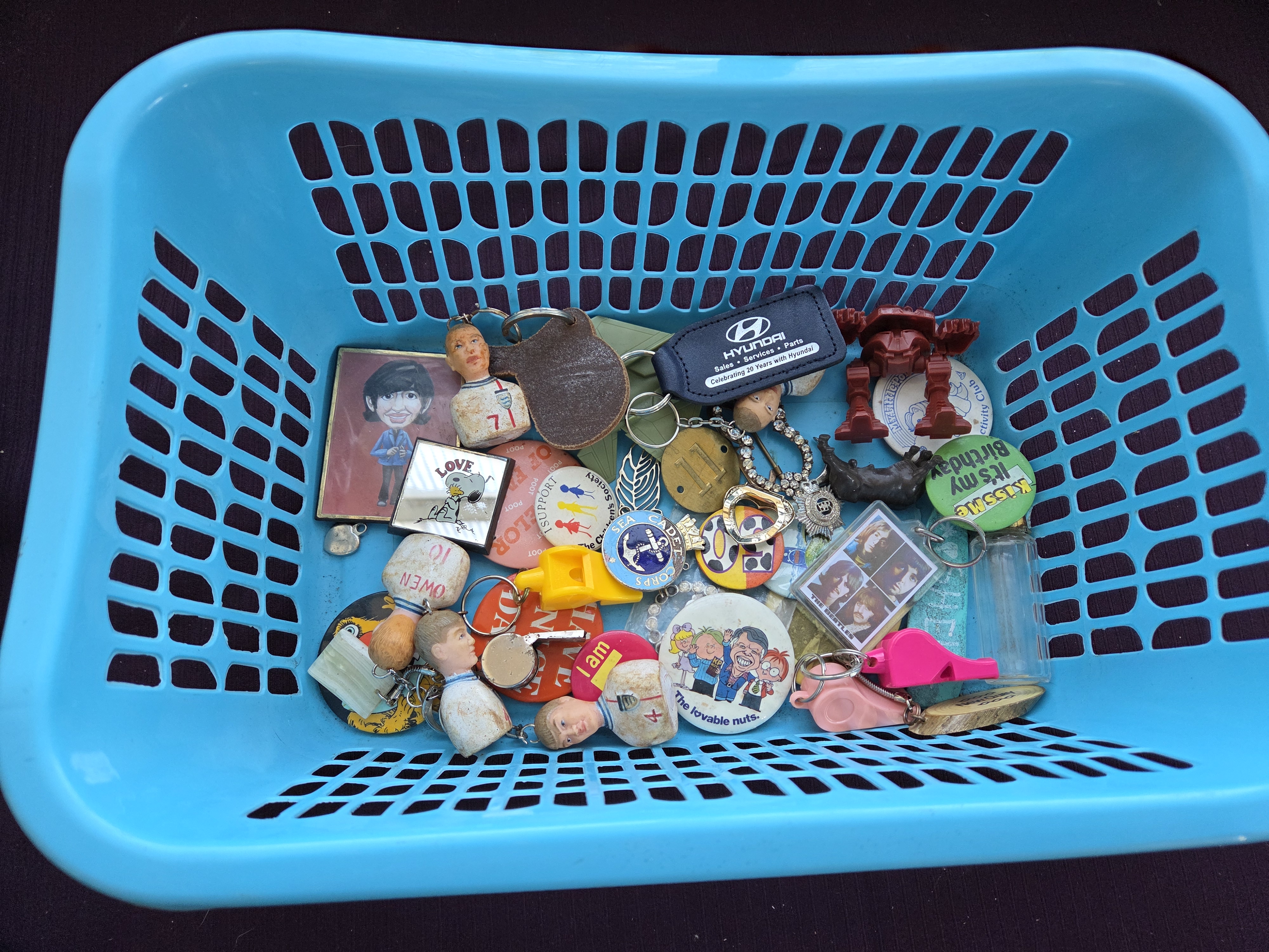 Lot 628 An Assortment of Vintage Keyrings, Badges, and Miscellaneous Memorabilia