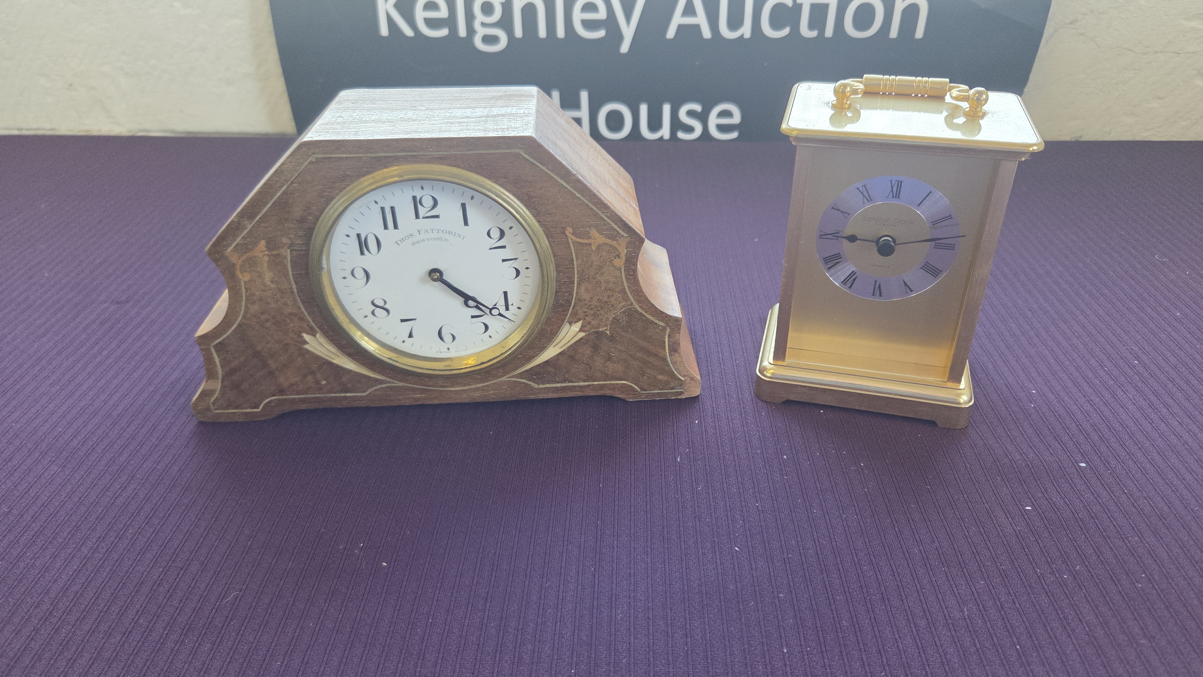 Lot 84 Two Mantel and Carriage Clocks including Thos. Fattorini and London Clock Company