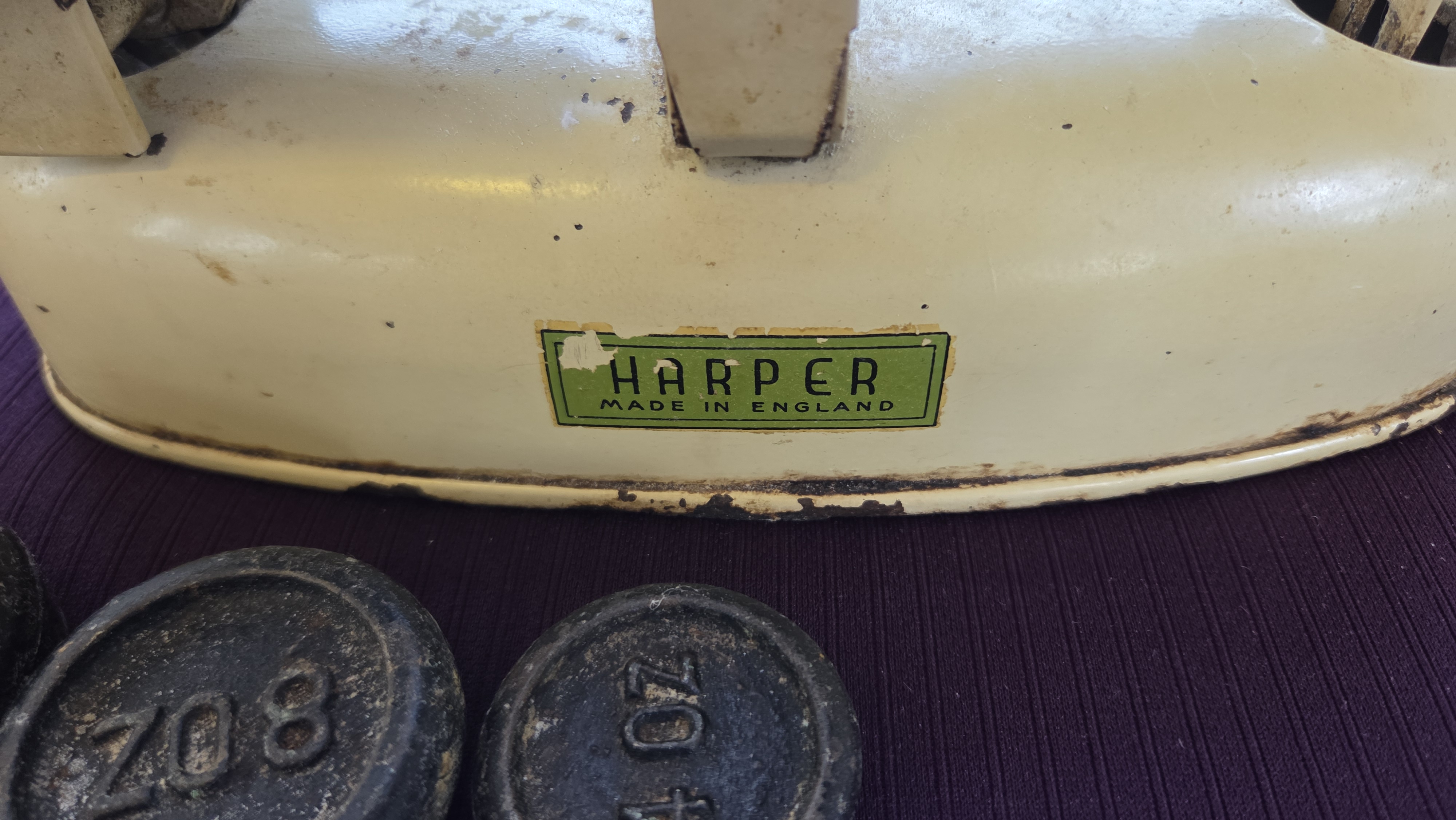 Lot 89 A Set of Vintage Harper Enamelled Kitchen Scales and Weights