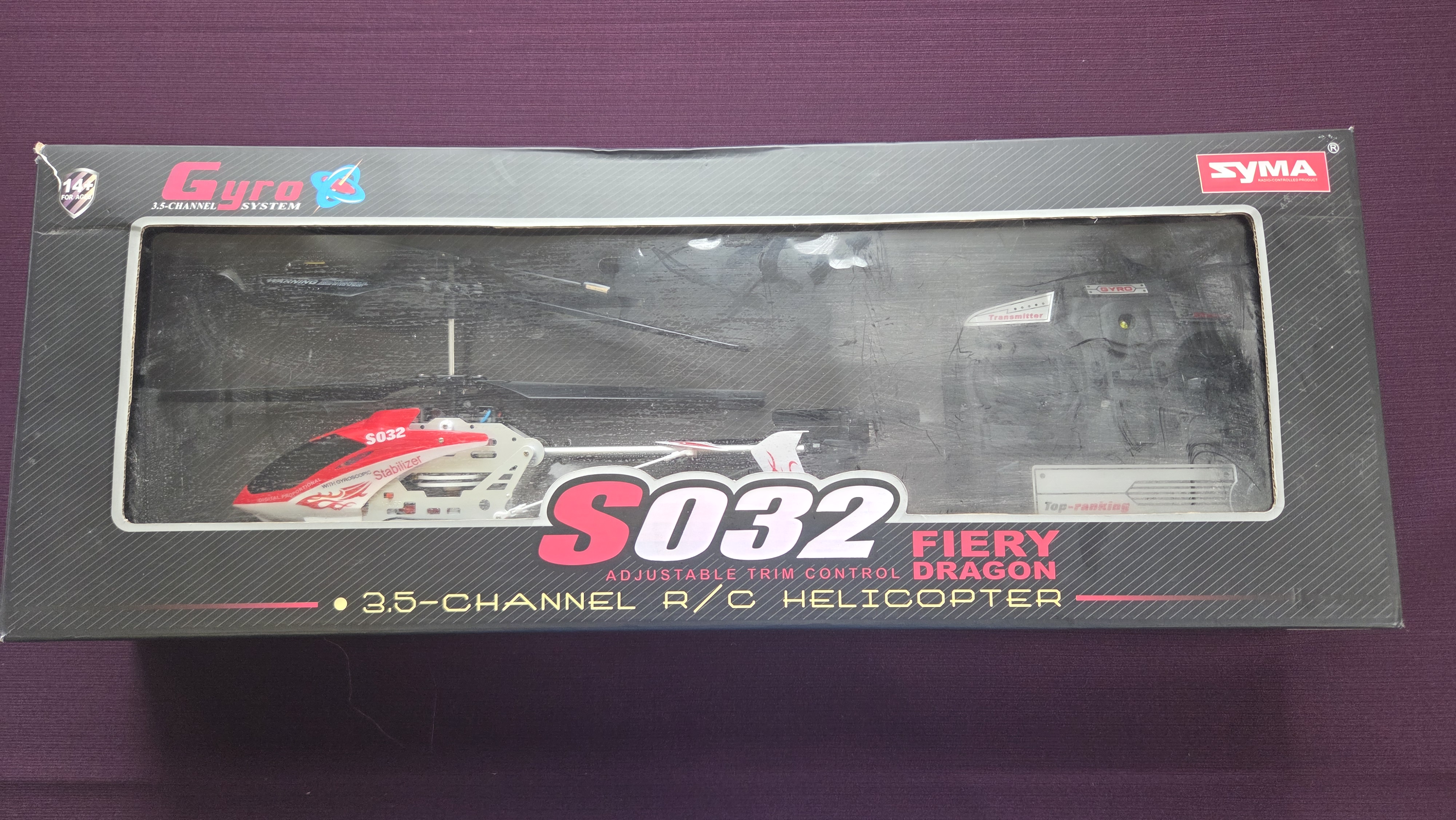 Lot 1 Syma S032 Fiery Dragon Radio-Controlled Helicopter powers on