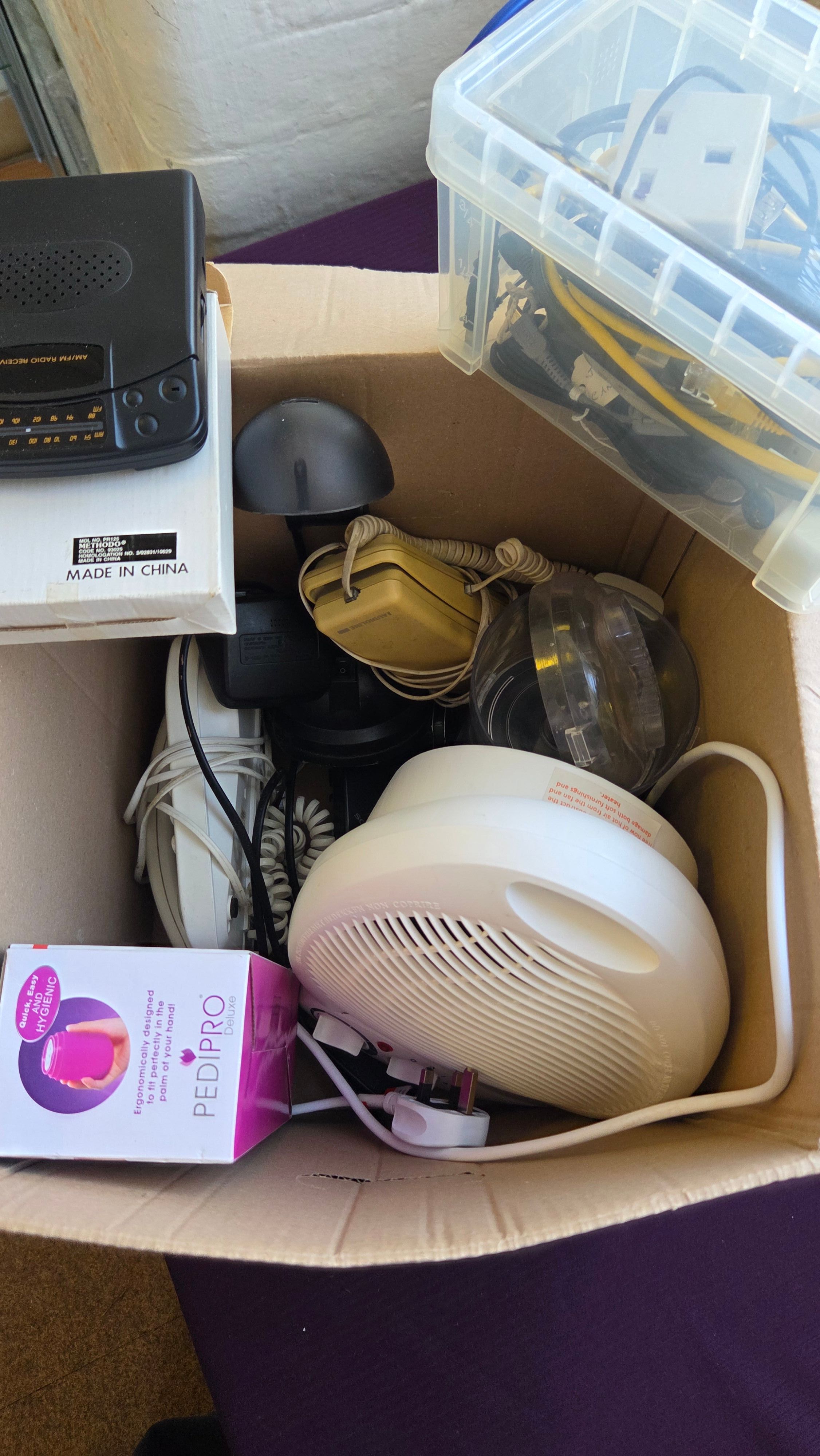 Lot 187 An Assortment of Domestic Electronics and Hardware including a Fan Heater and Portable Radio