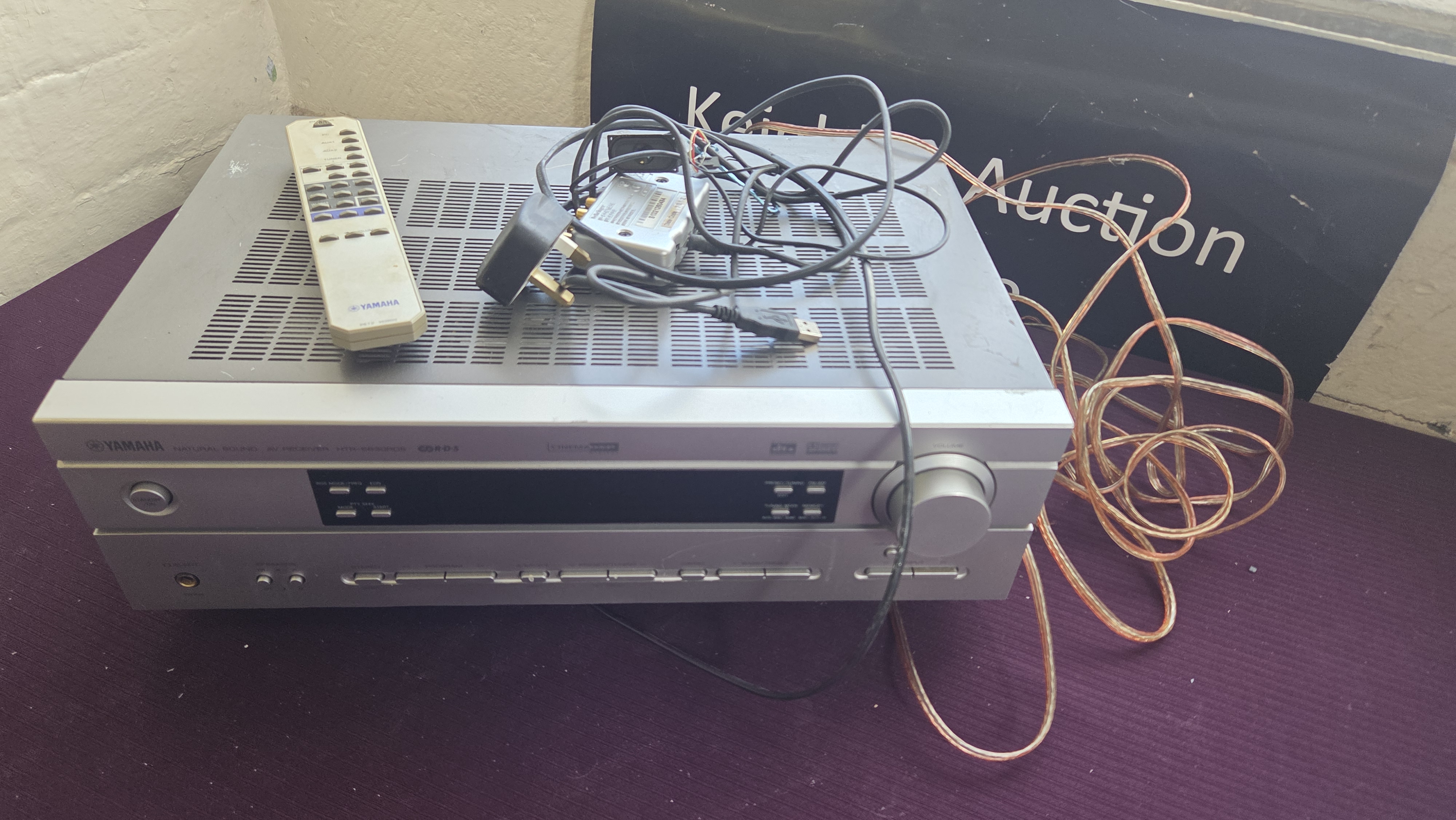 Lot 237 Yamaha HTR-5930RDS Natural Sound AV Receiver with Remote and Accessories powers on