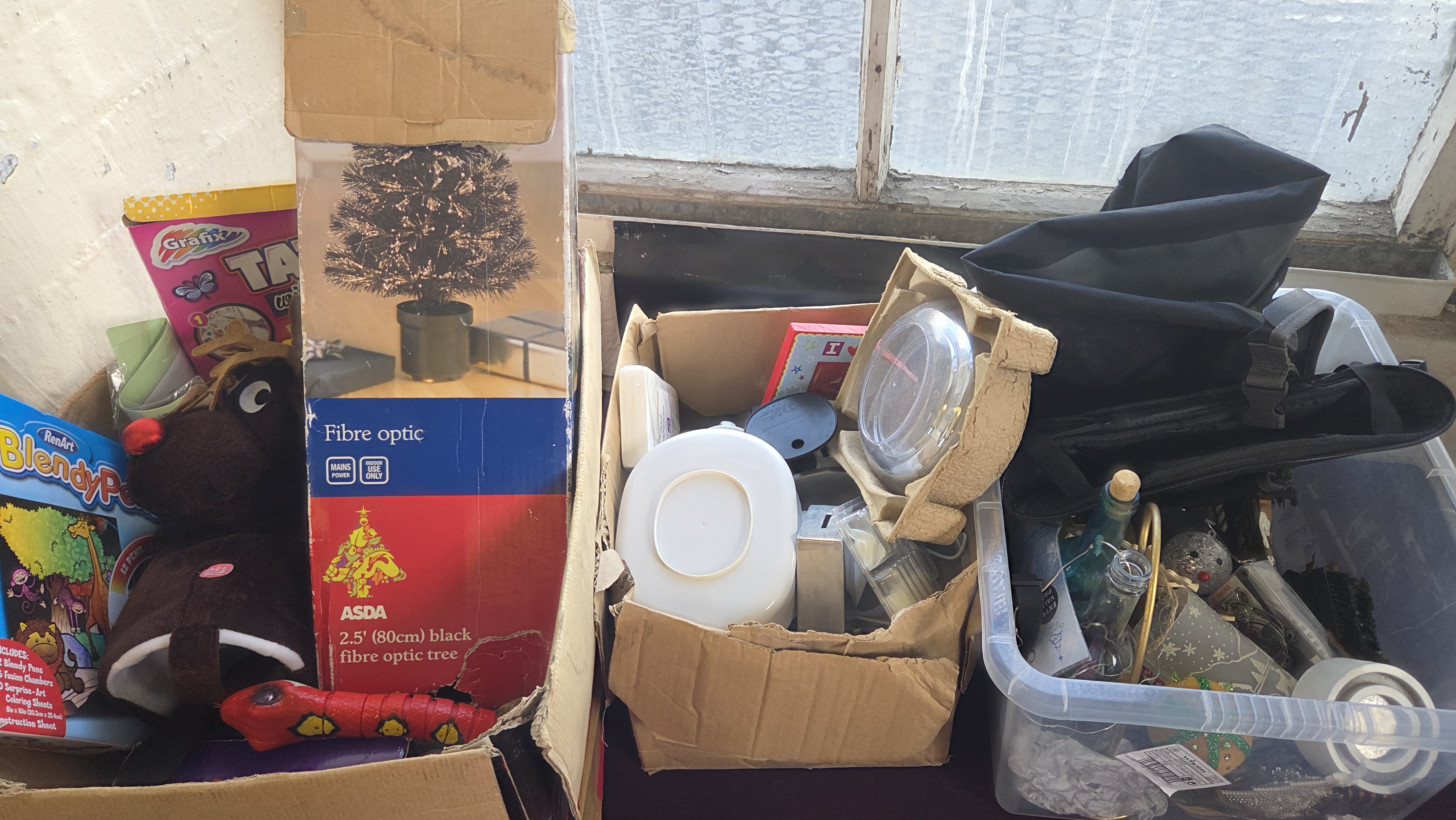 Lot 238 Three Boxes of Domestic Goods, Toys, and Seasonal Decorations