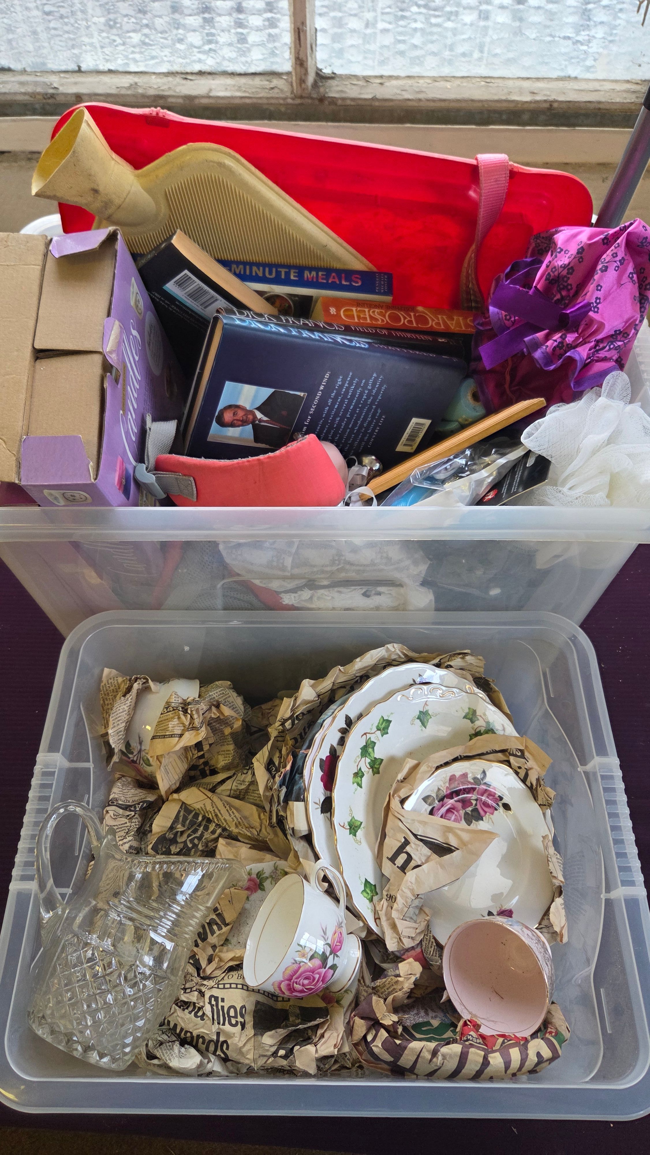 Lot 250 Two Boxes of Miscellaneous Household Collectables, Books, and Ceramic Teaware