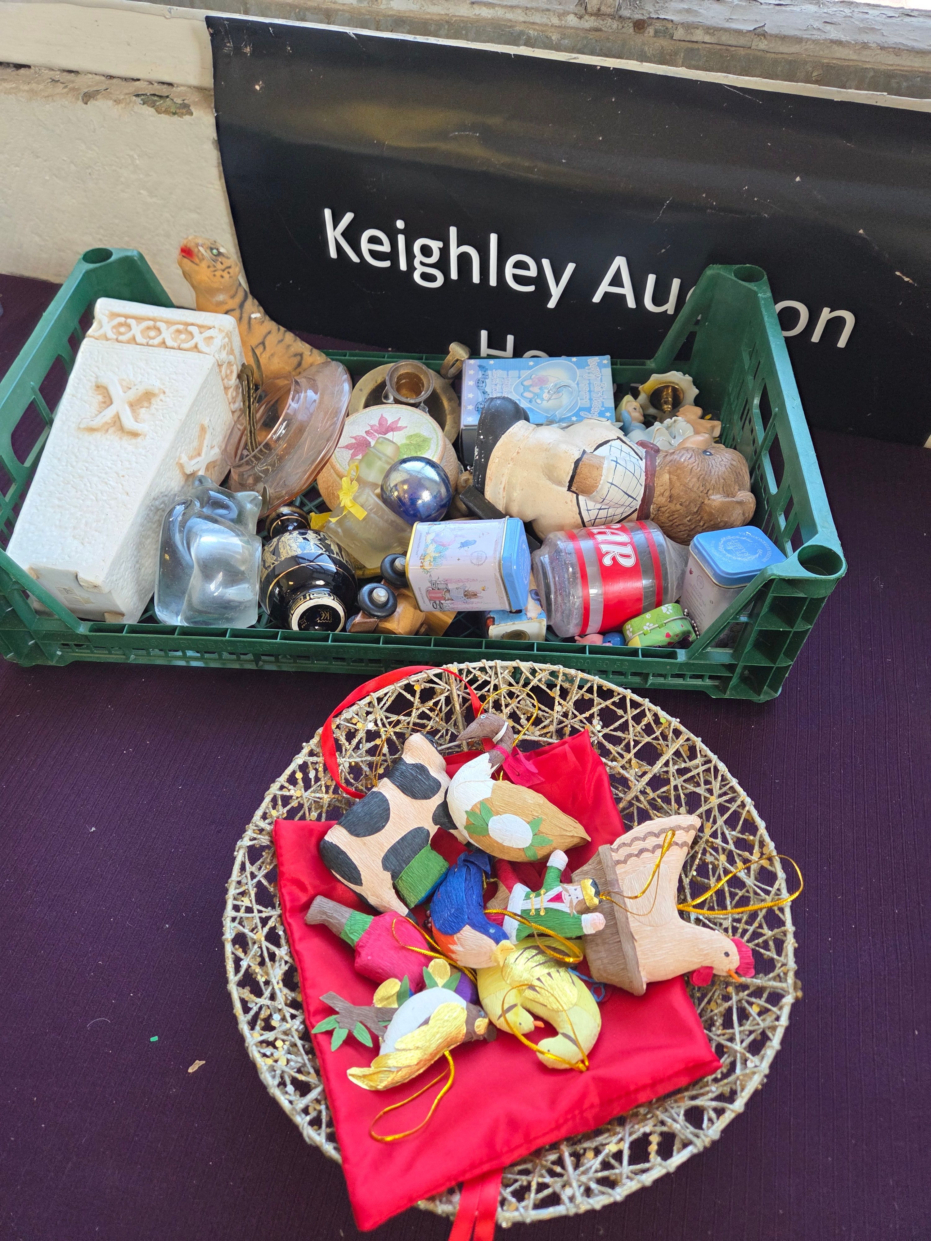 Lot 252 A Collection of Miscellaneous Decorative Items, Ceramic Figurines, and Wooden Ornaments