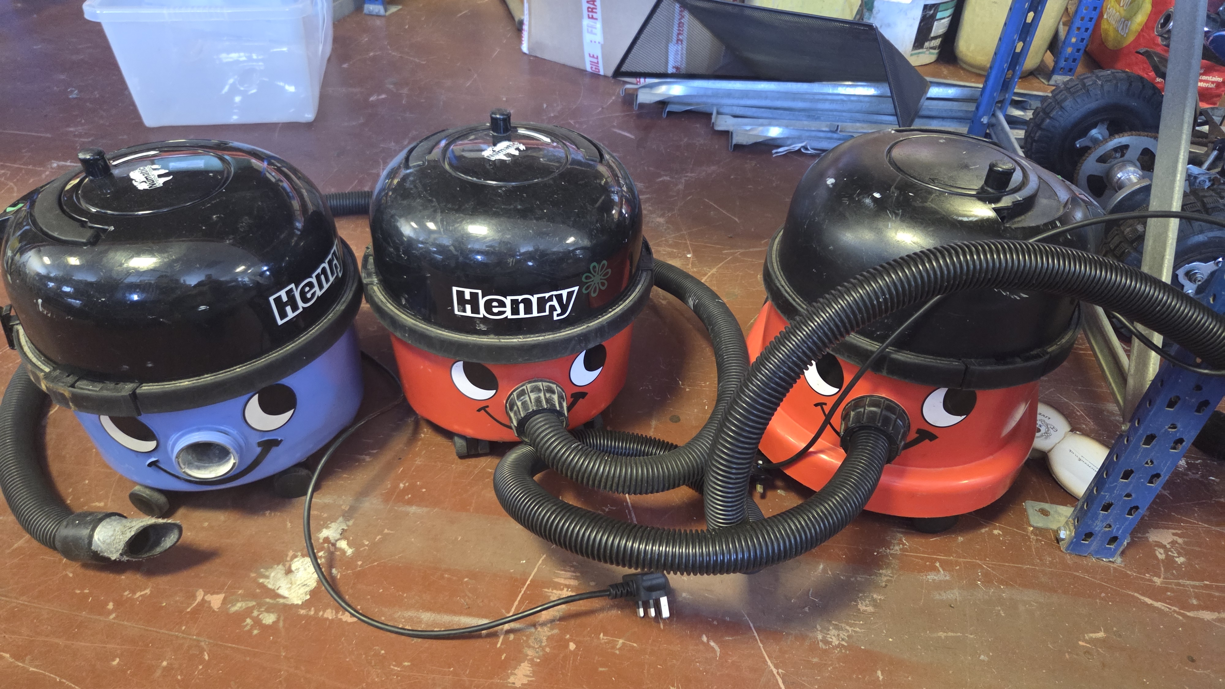 Lot 278 Three Numatic Henry Canister Vacuum Cleaners one in working order