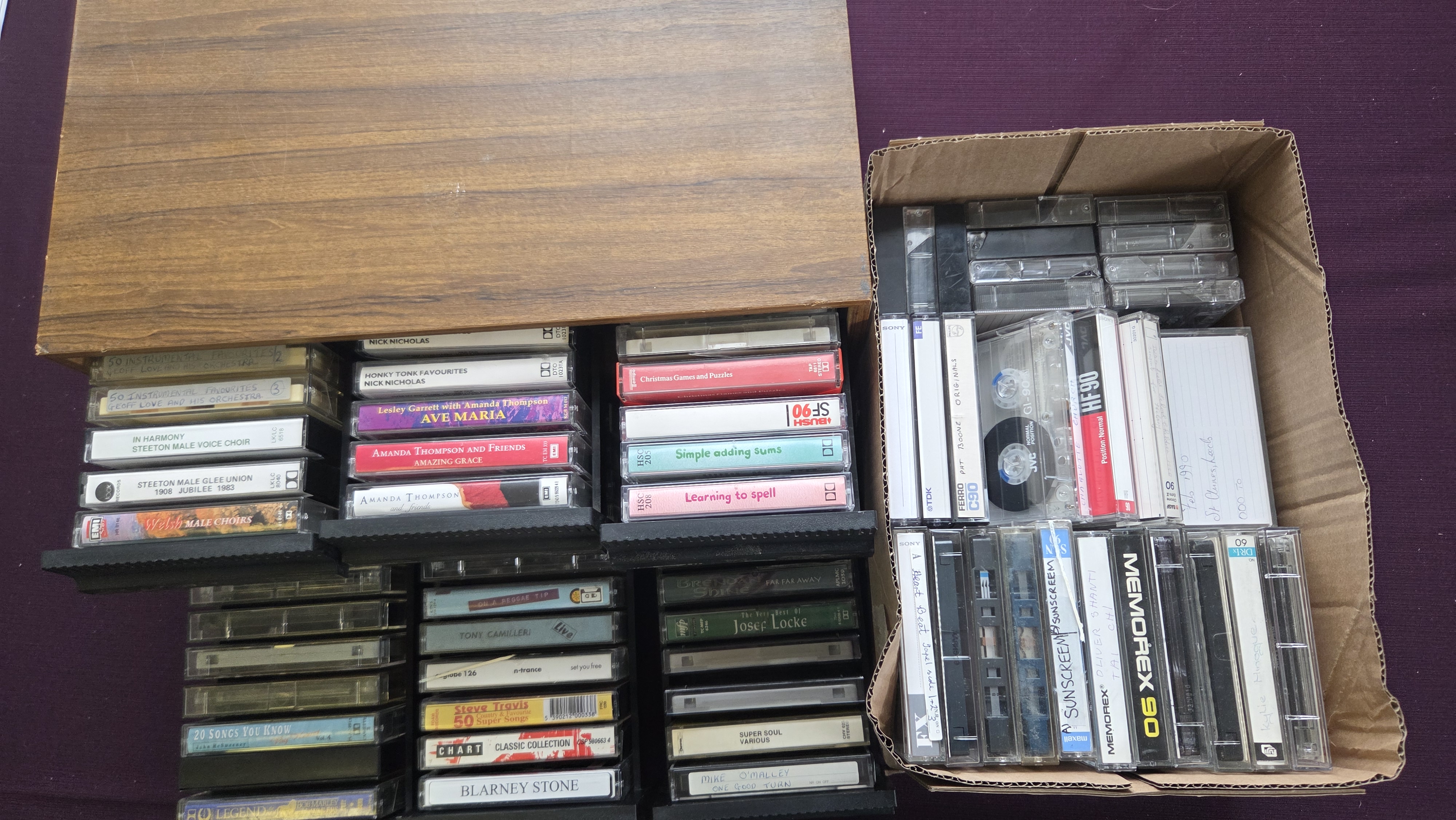 Lot 40 A Collection of Audio Cassette Tapes and a Three-Drawer Storage Cabinet