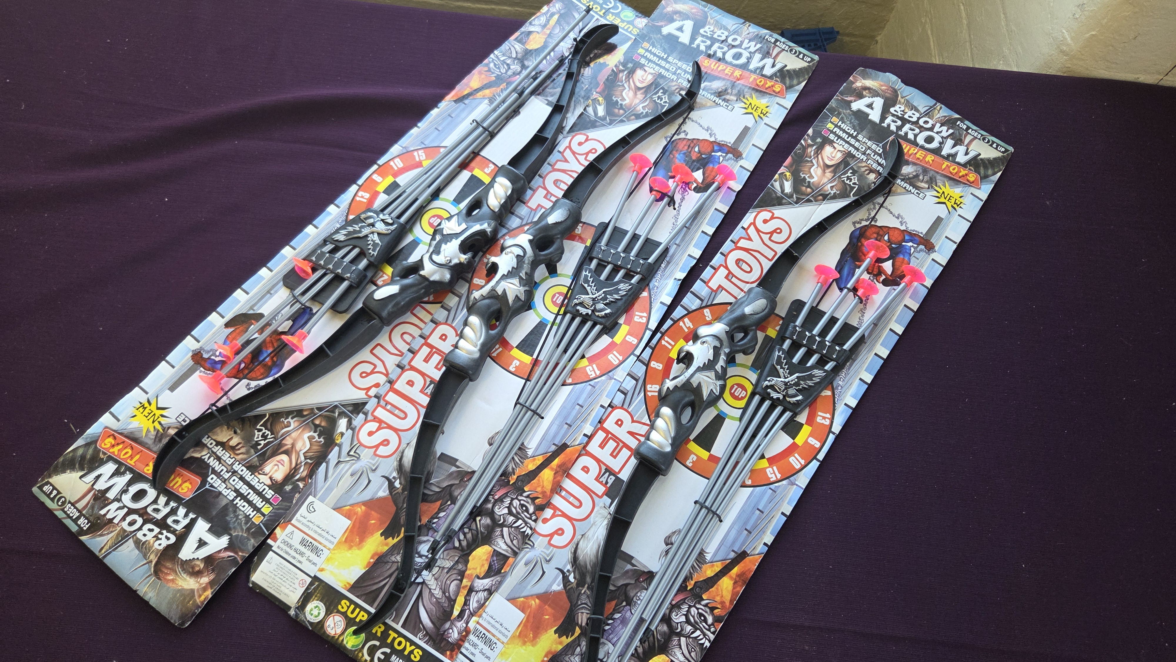 Lot 52 Three Super Toys Bow and Arrow Archery Sets on Original Cards