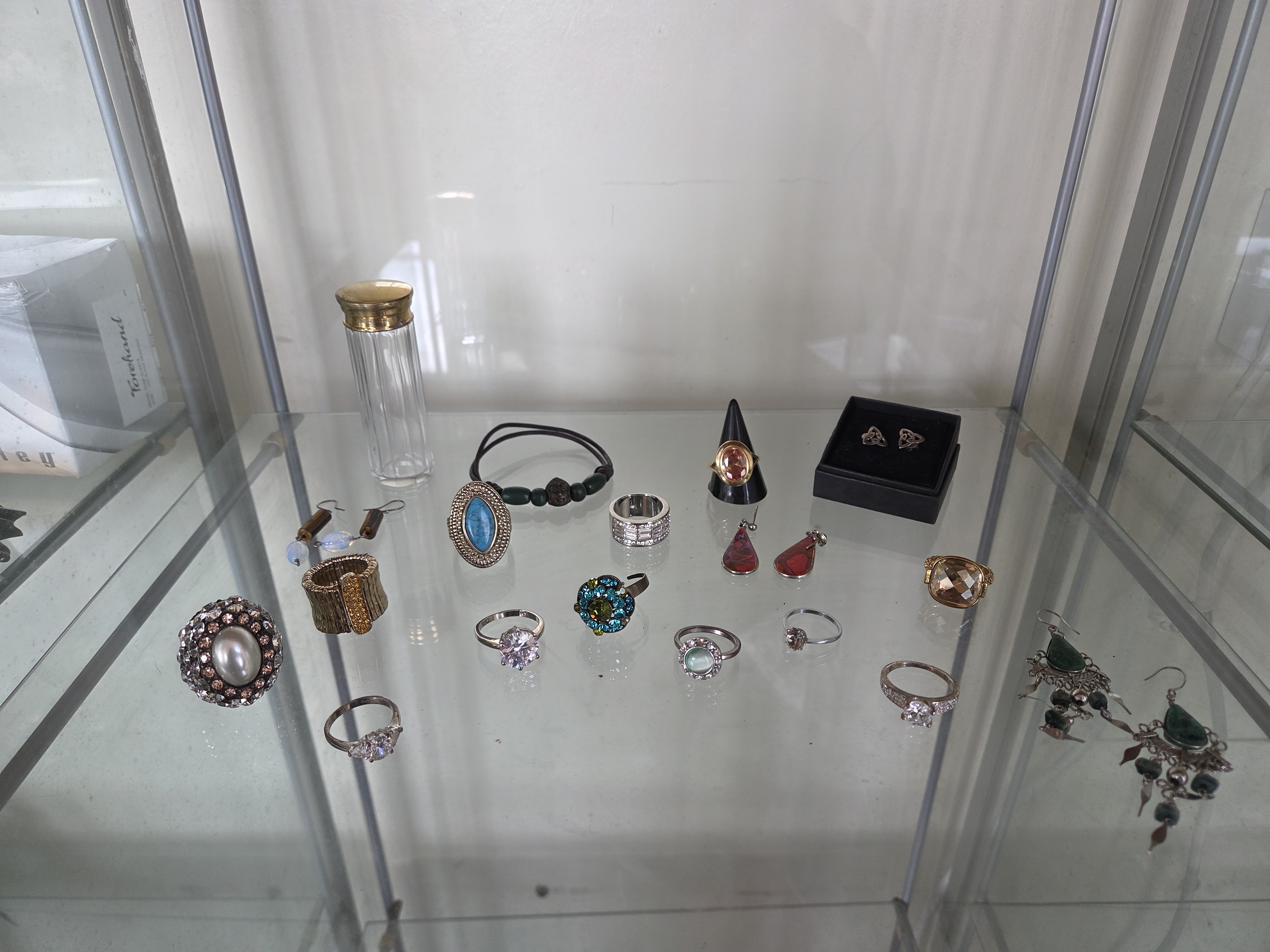 Lot 628 An Assortment of Costume and Fashion Jewellery including Rings, Earrings, and a Beaded Bracelet