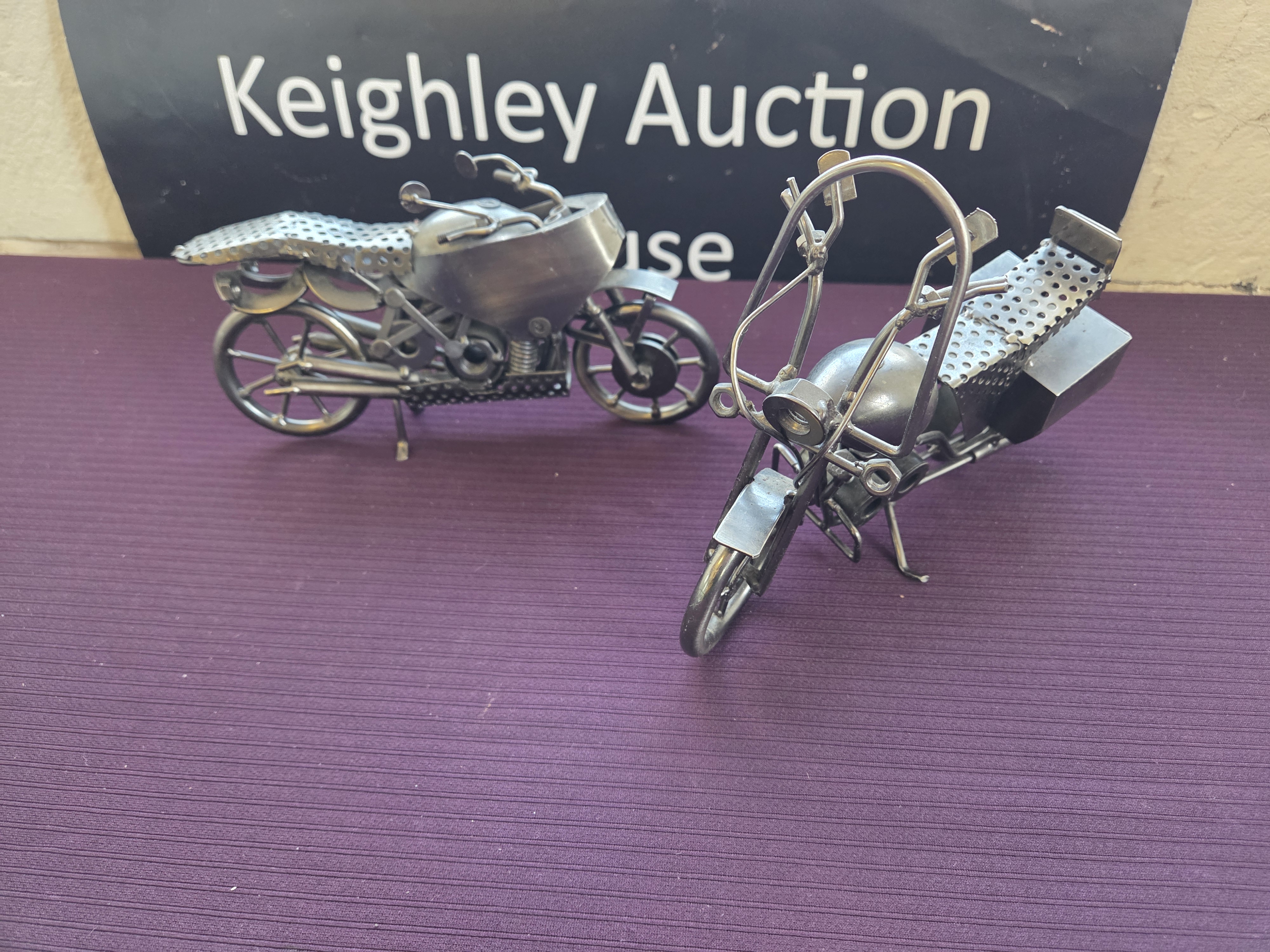 Lot 637 A Pair of Contemporary Hand-Welded Scrap Metal Motorcycle Sculptures